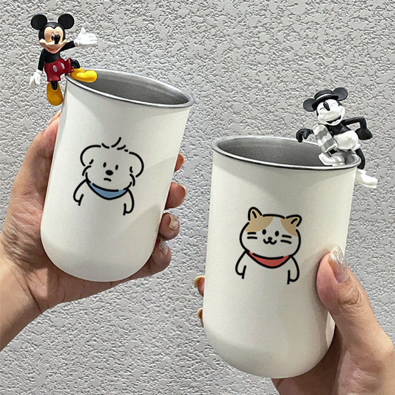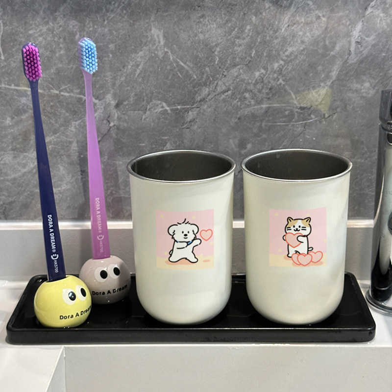 ❤️Sunburn minus 3 Yuan❤️-- Stainless Steel Resistant White Gargle Cup A Pair Of Scribble Family Stickers (A) White gargle Cup pair of scrimmage family stickers (section B) gargle cup white
