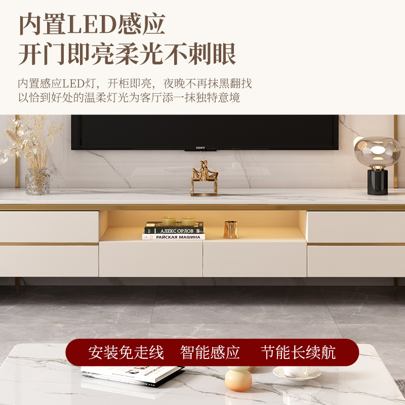 Rock plate solid wood TV cabinet tea table combined floor modern simple to contain storage integrated side cabinet living-room home-Taobao