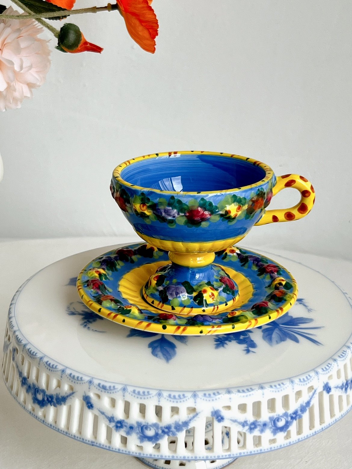 Flaw special price I would like to call beautiful little waste pure hand-painted relief small brute waist high foot cup coffee cup-Taobao