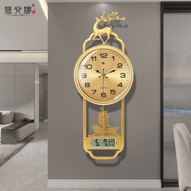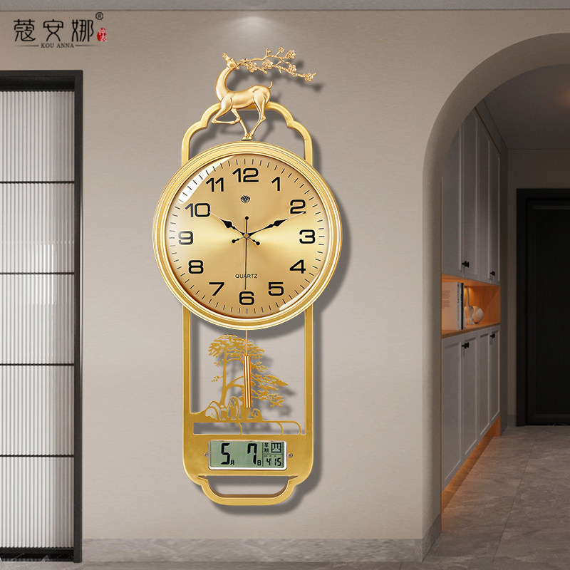 New Chinese hanging clock Living room light extravaganza Decorative Perpetual clock Home wall-mounted clock muted minimalist Large quartz clock-Taobao