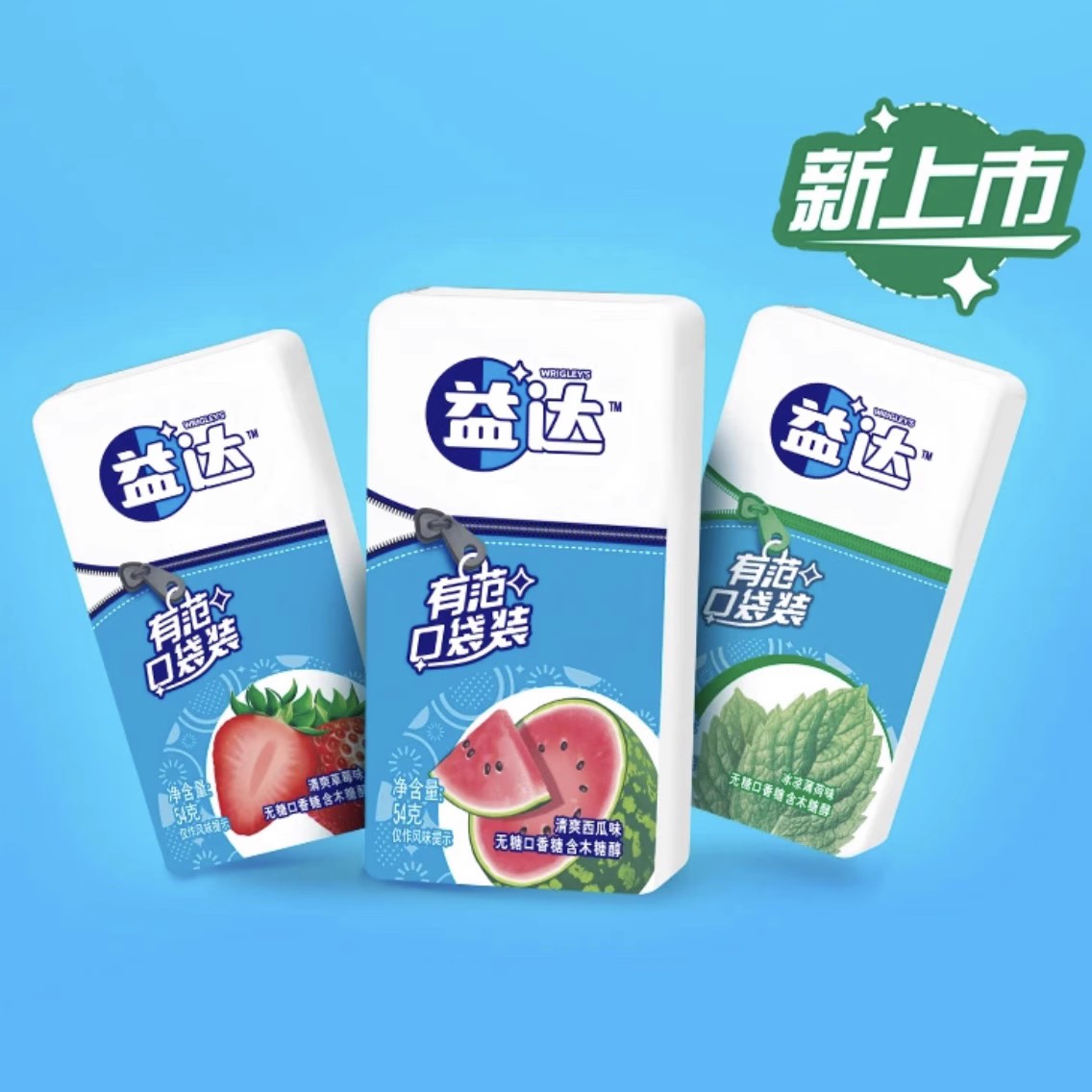 Yida Youfan sugar-free chewing gum 20 pieces pocket strawberry watermelon flavor xylitol bubble gum 54g*9 small box