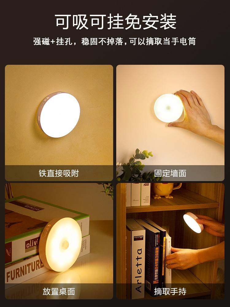 Human induction building Road voice-controlled home Wireless Smart night bed headlights Small night light Bedroom sleep charge-Taobao