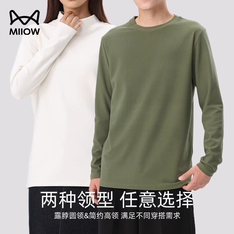 Cat person autumn and winter double face grinding with undershirt male pure color 100 lap high neckline with long sleeves t-shirt thickness warm blouses-Taobao