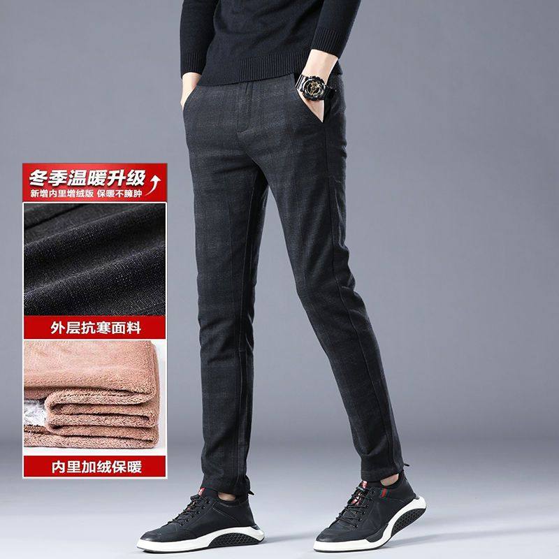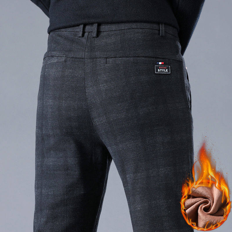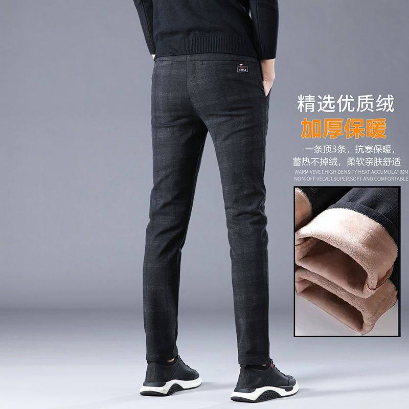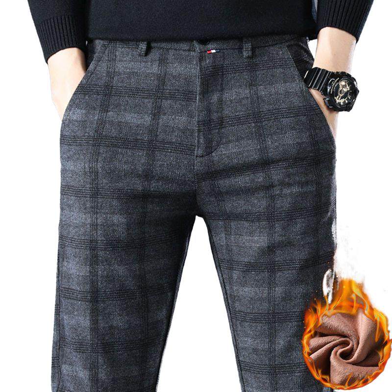 Winter Mill Fur Casual Pants Straight Silo Plus Suede Thickening Long Pants Male elastic Fashion Senior Inn Plaid Pants Thick-Taobao