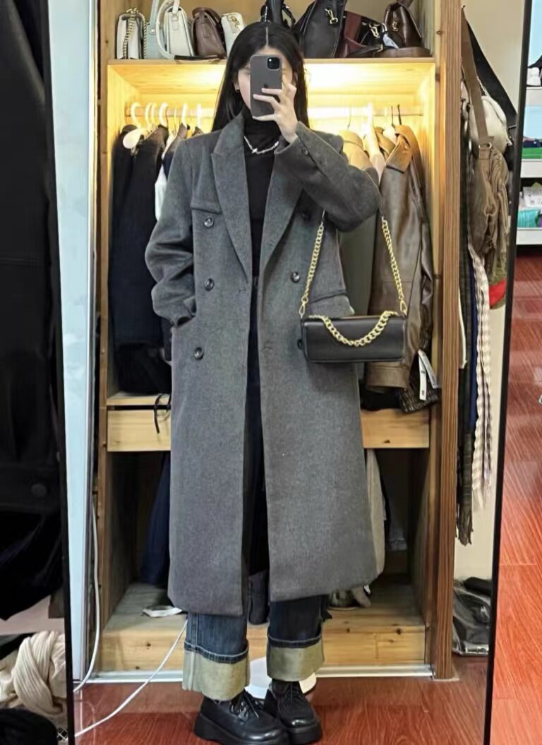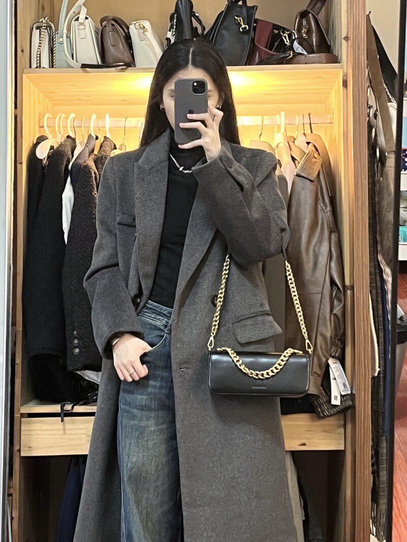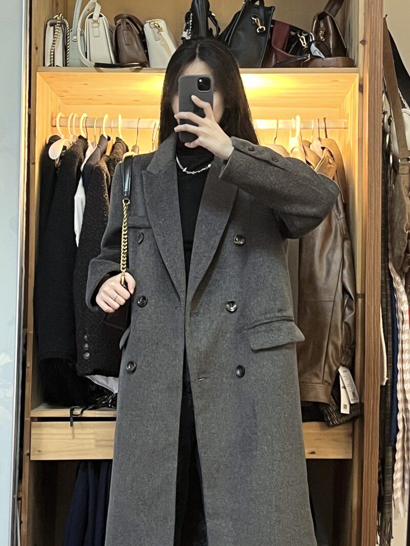 Gray hair, great coat winter senior sensation Herben wind long style suit, girl jacket woman in Korean version with Korean version little guy-Taobao