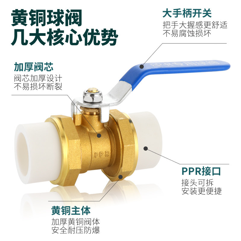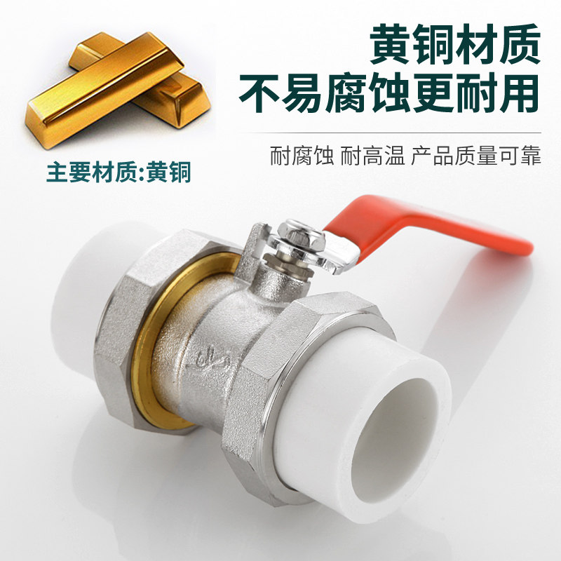 PPR copper ball valve 4 6 points 1 inch Double head Living with internal and external wire valve switch Home 20PE tap water tap 3143-Taobao