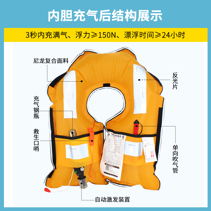 Marine inflatable single air bag life jacket adult portable 300 catty automatic inflatable boat inspection maritime CCS certification-Taobao