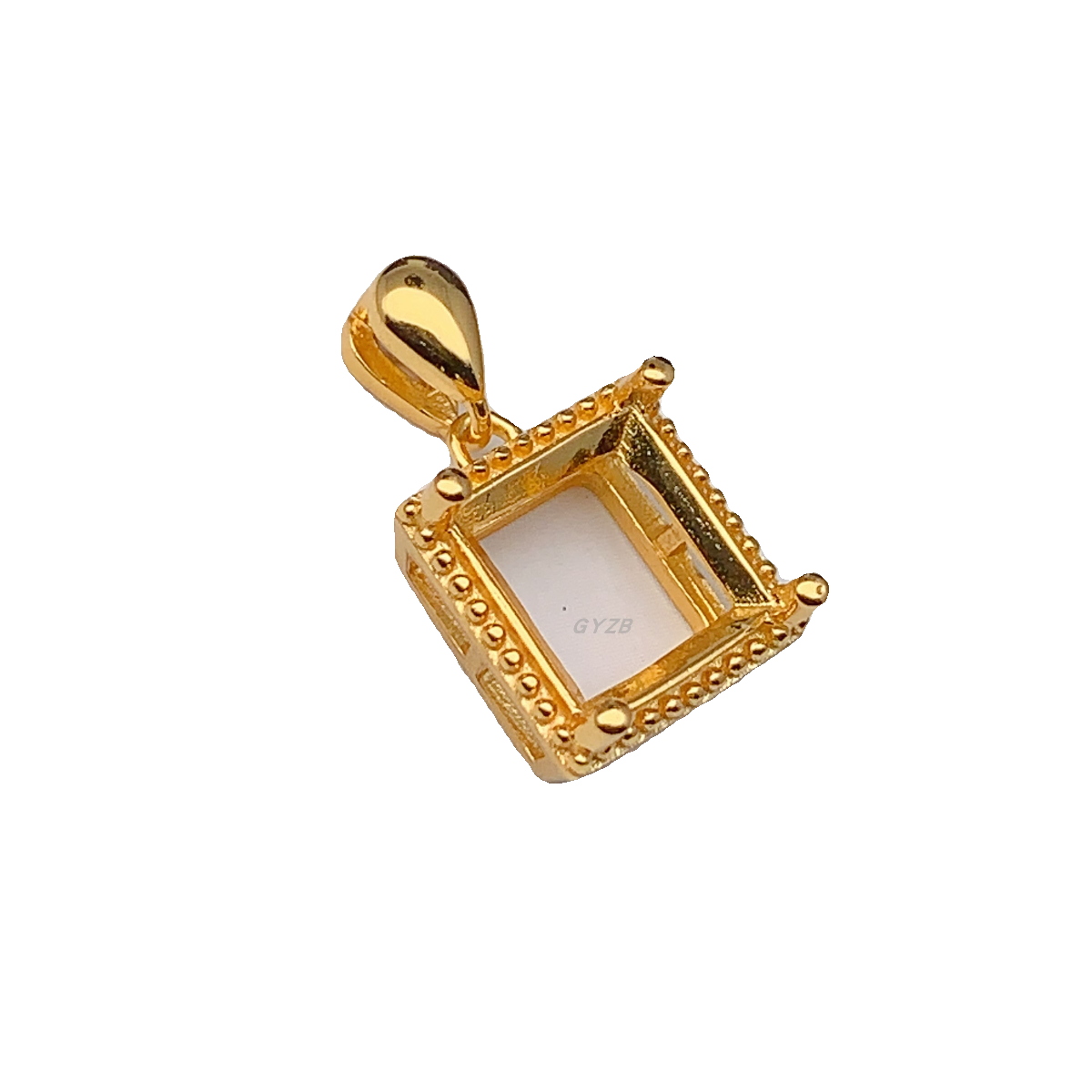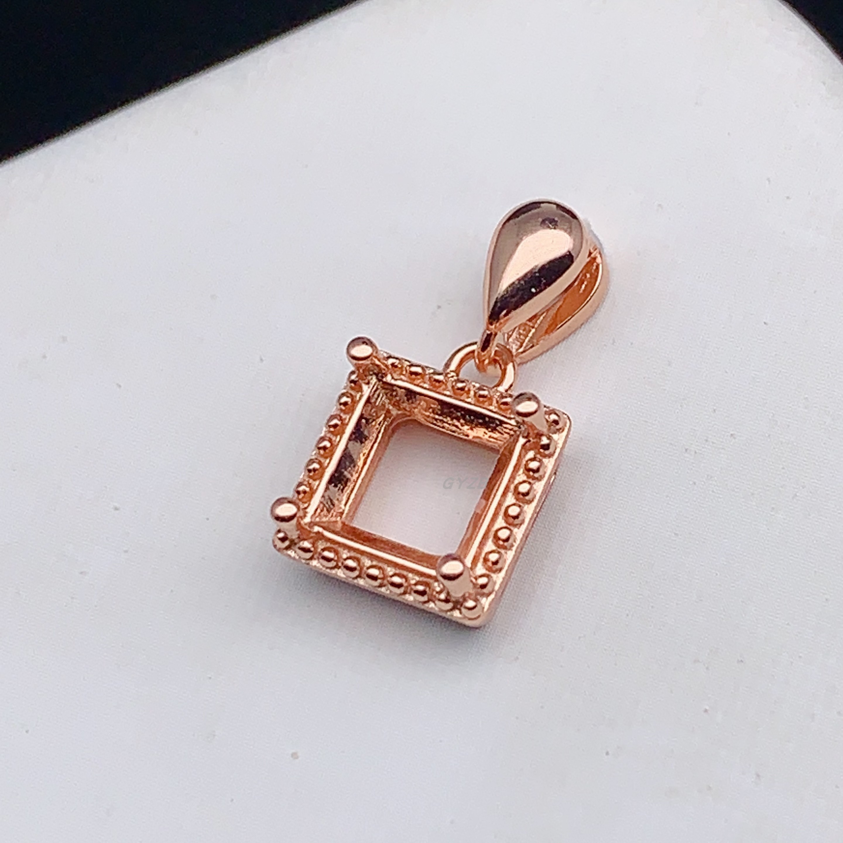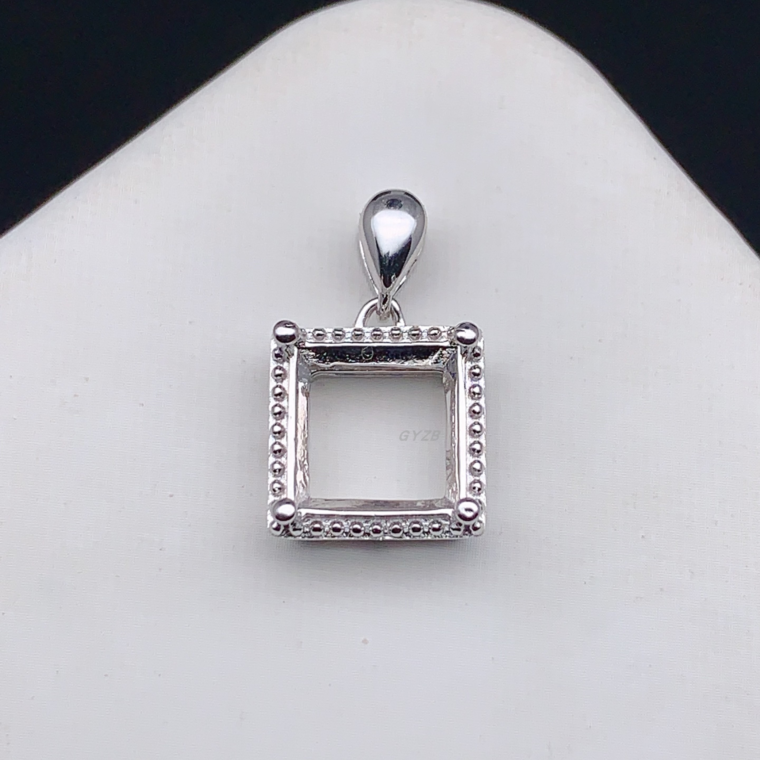 S925 pure silver pendant empty tootto fresh lace dot border inlays 6 * 6 8 * 8 10 * 10mm items pendant Ginto-Taobao