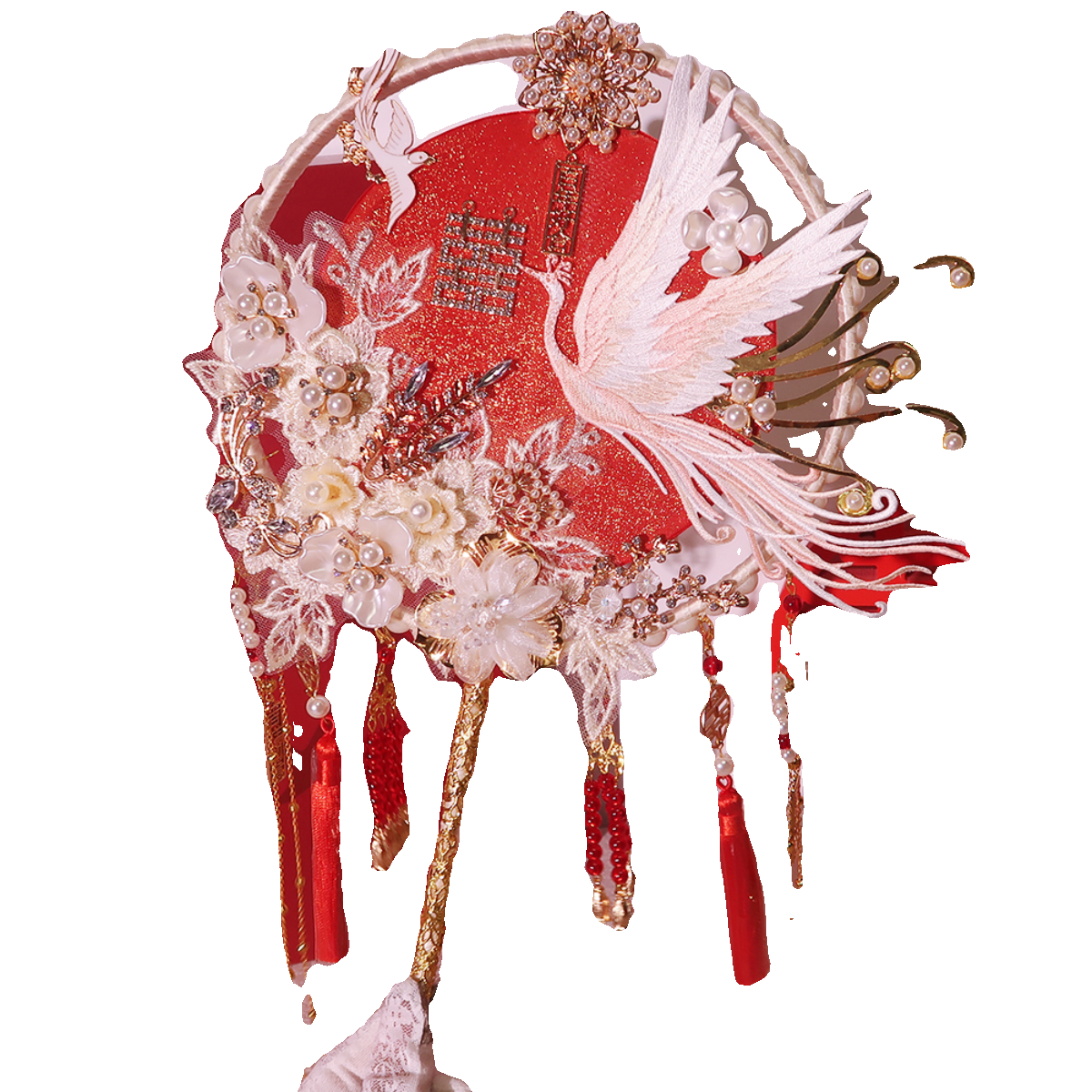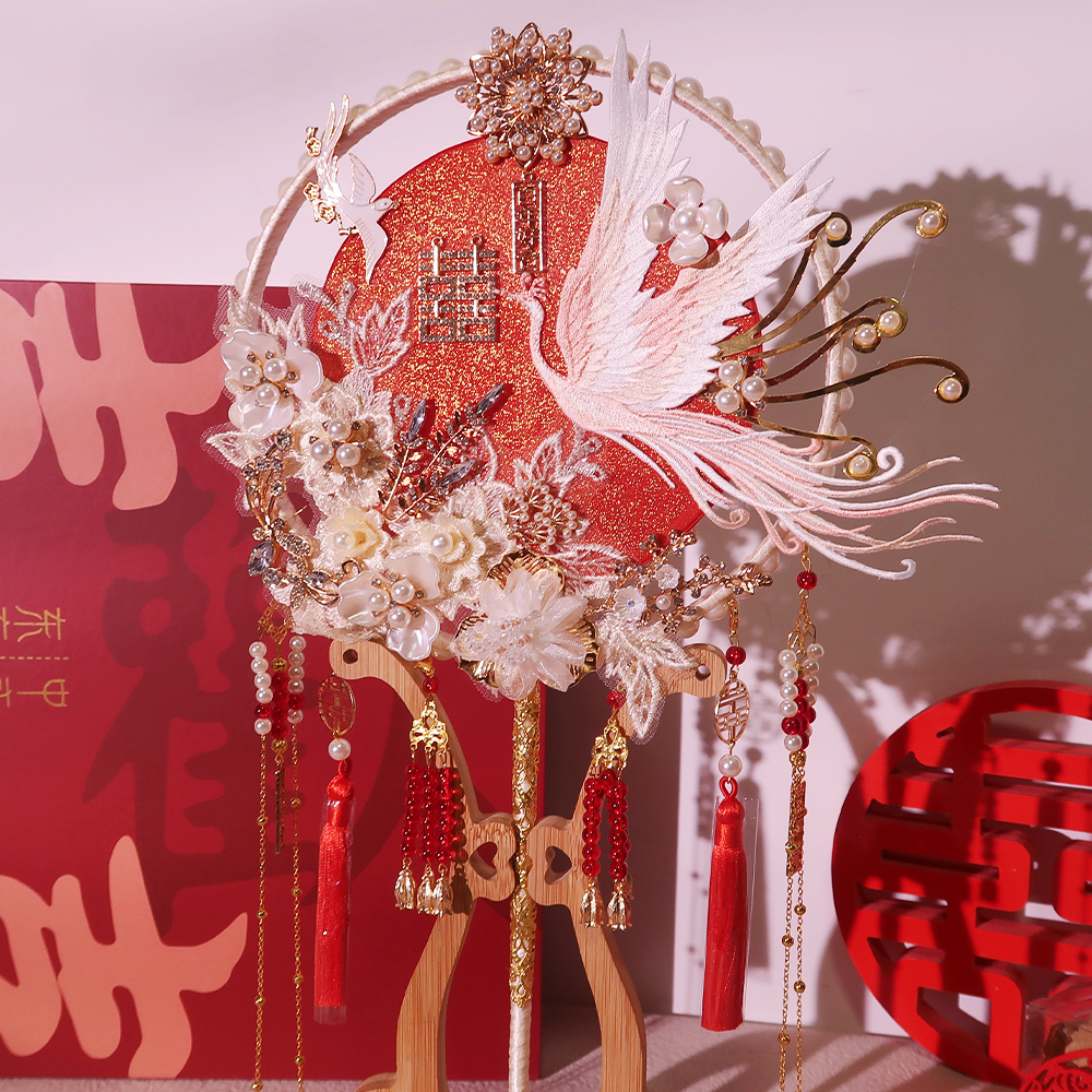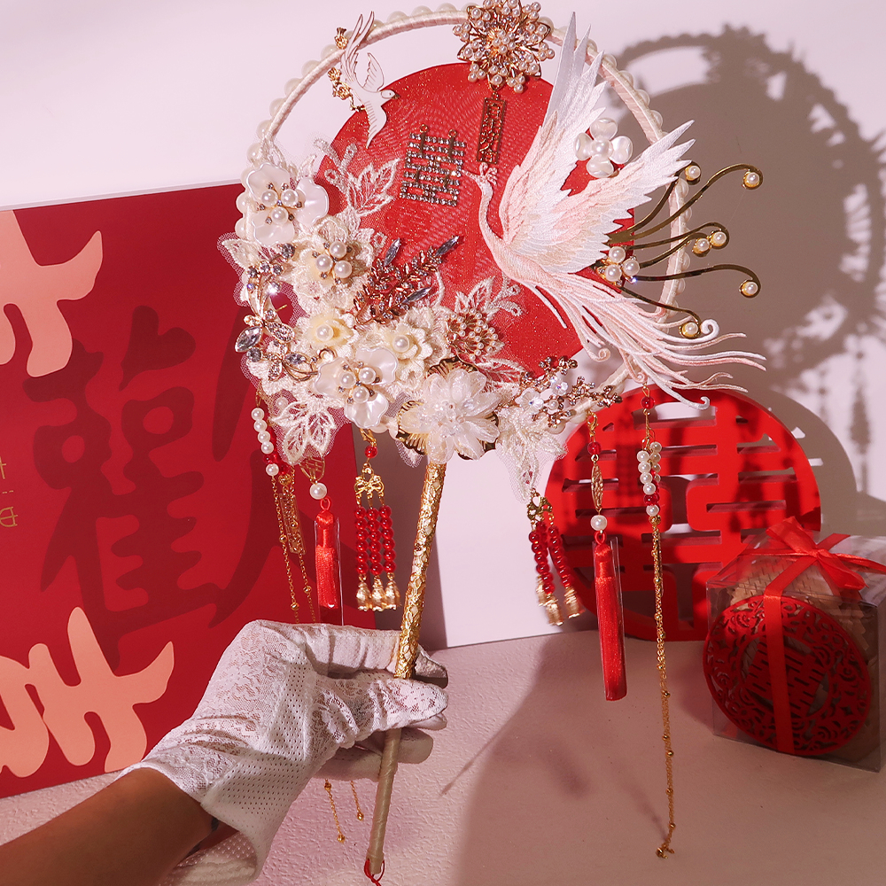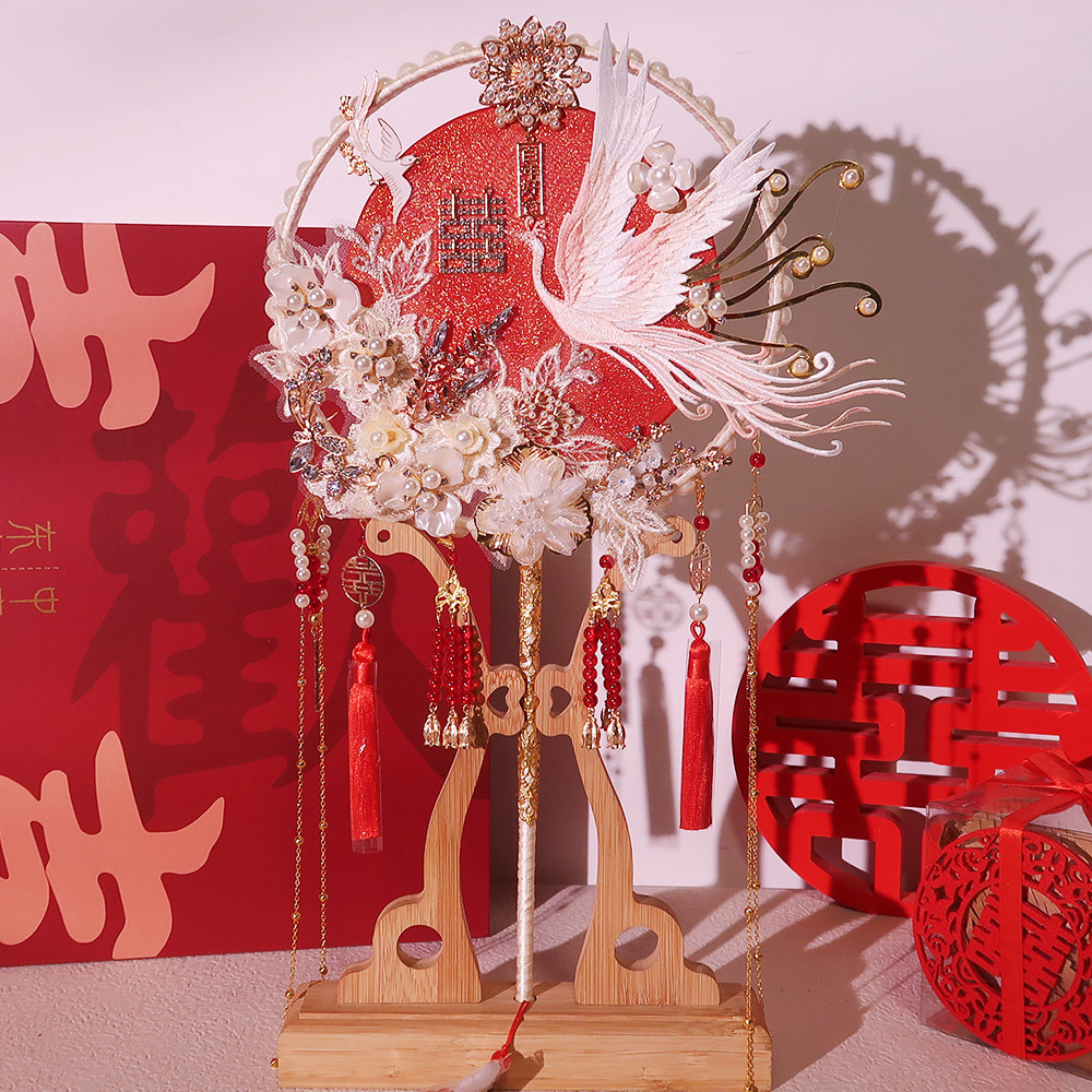 Ancient Wind Group Fan Wedding Bride Diy Material Bag Chinese touted flower wedding fan red bridal show and comedy fan-Taobao