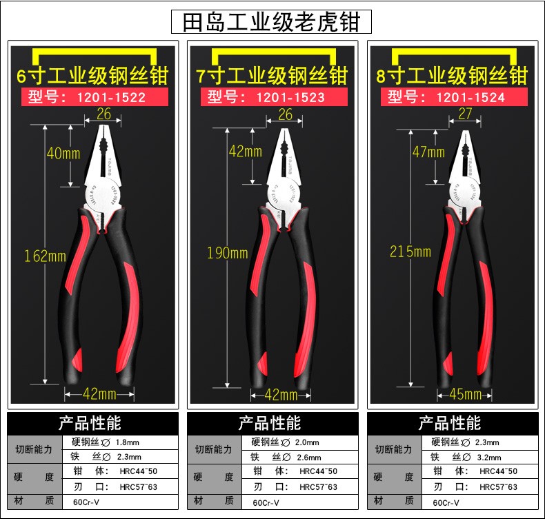 6 inch wire pliers 7 inch wire pliers 8 inch wire pliers