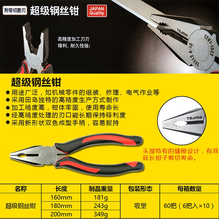 Japan Tian Dao Steel Wire Pincers Old Tiger Pliers 6 Inch 7 Inch 8 Inch Pliers Tool Wire Breaking Industrial Grade-Taobao