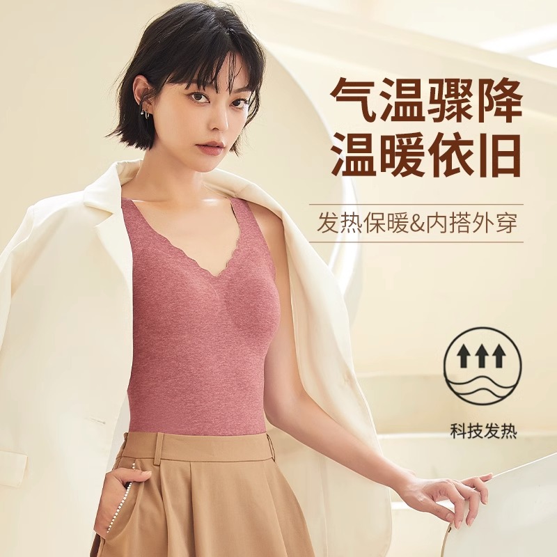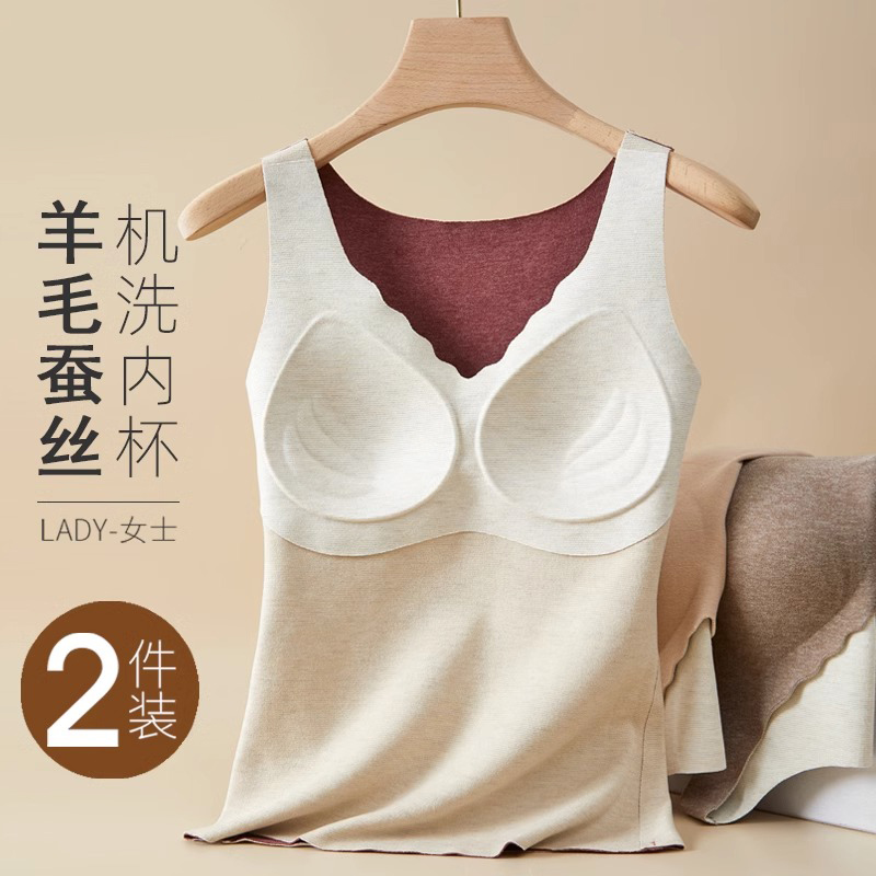 Duvet Silk Warm Vest Lady Fever with chest cushion free from wearing bra lingerie Winter without marks-Taobao