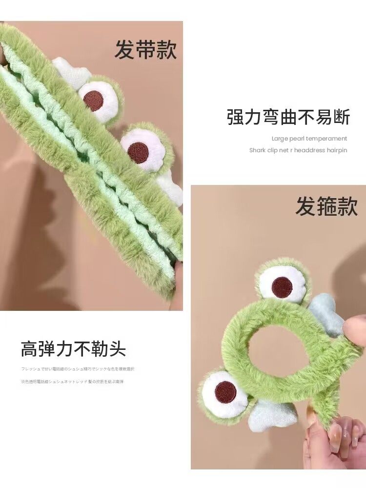 Wash Face Hair Stirrup 2023 New Cartoon Cute Plush Frog Bunch Hair with hair card Anti-slip pressing hair head hoop hair bale-Taobao