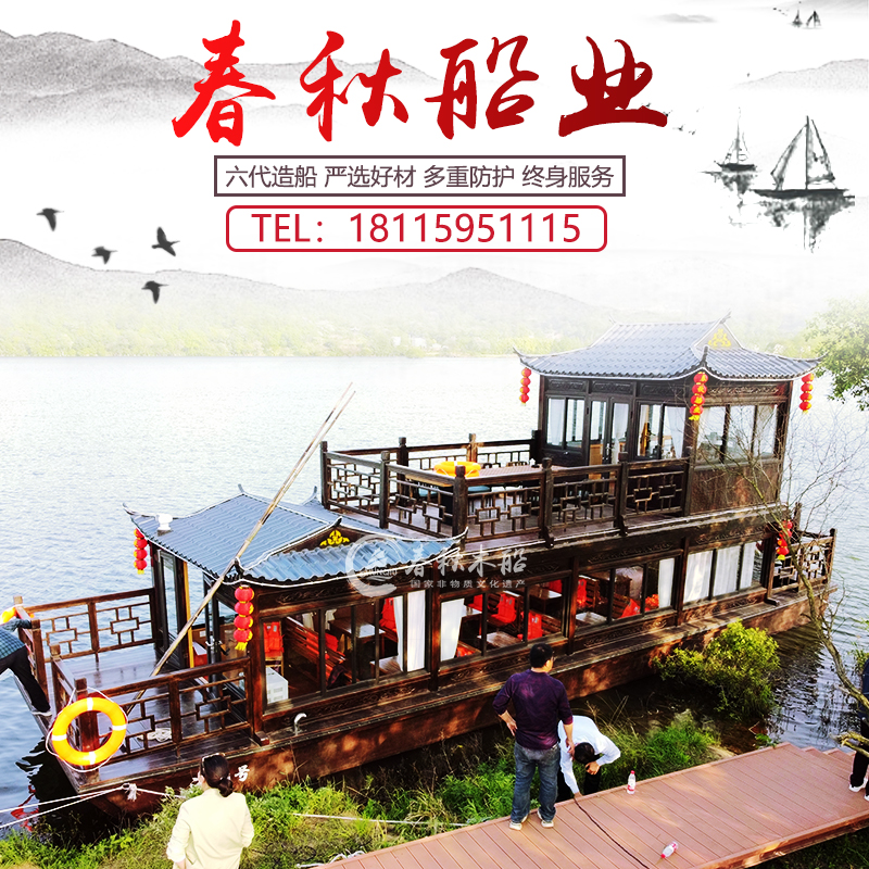 Wooden Boat Painting Large Double Water Electric Dining Sightseeing Tour Conference Solid Wood Antique House Real Hall Scenic Spot-Taobao