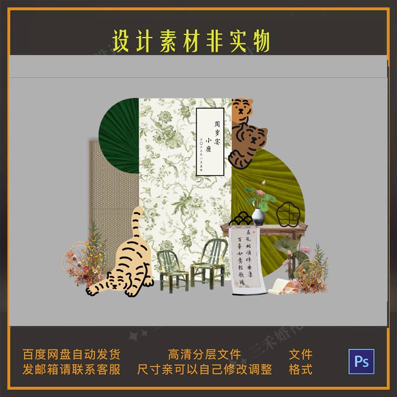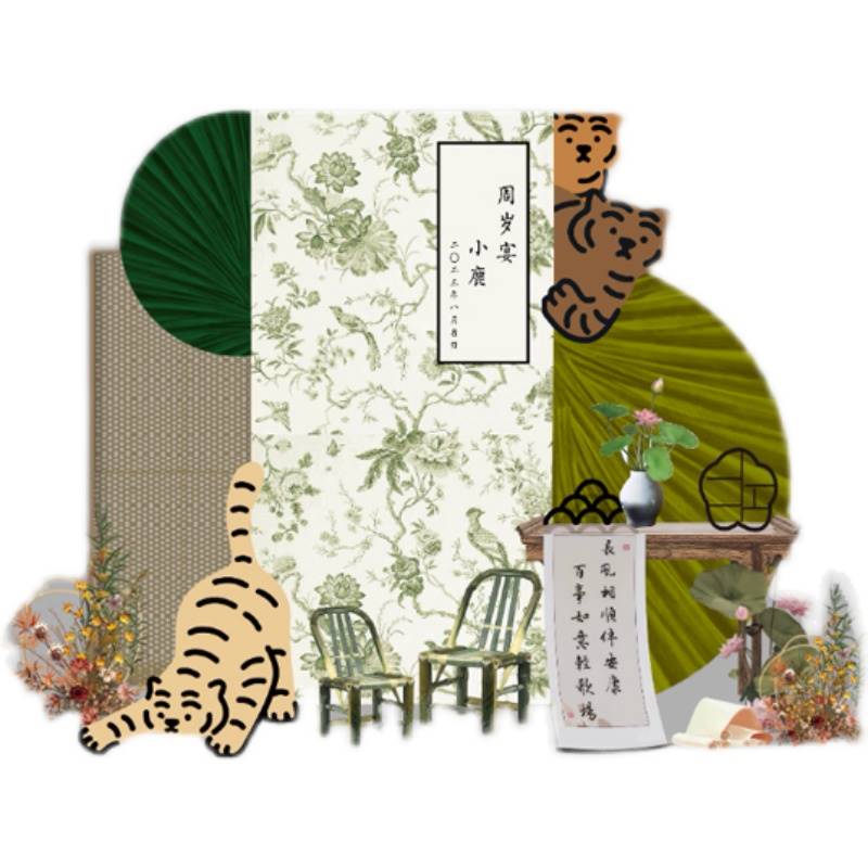 Green patterned tiger Chinese style ancient wind baby banquet material 100 born birthday party design material-Taobao