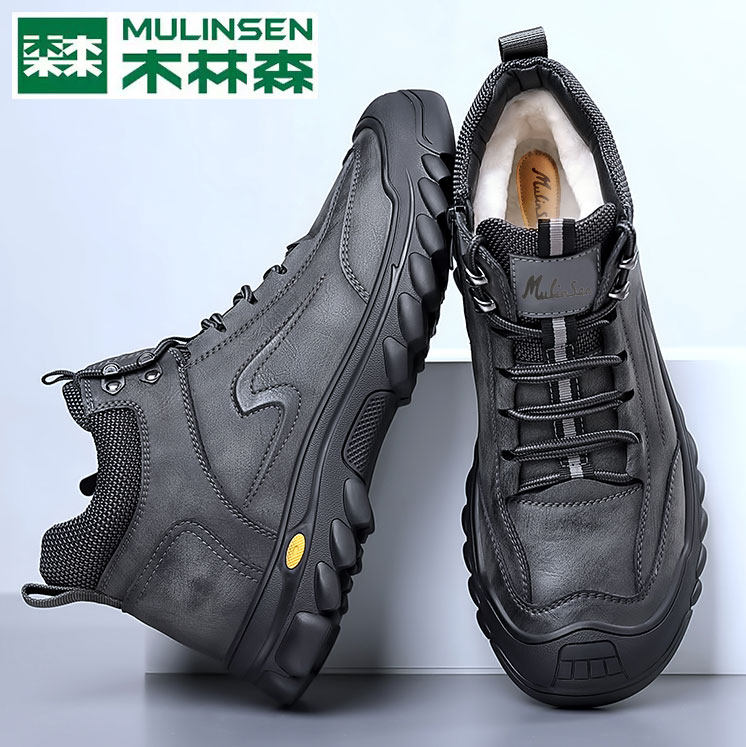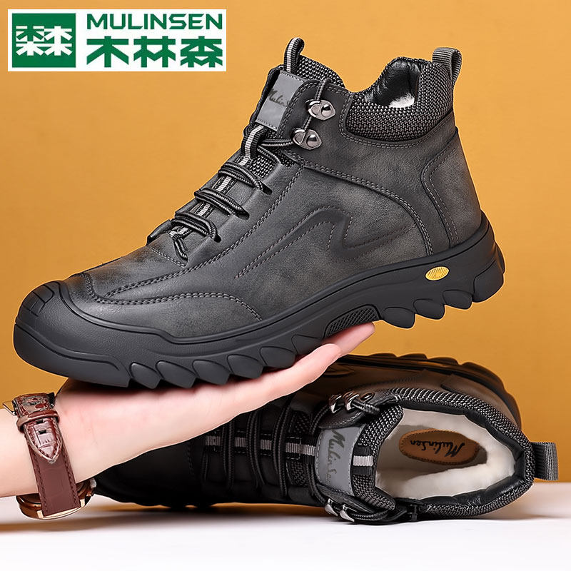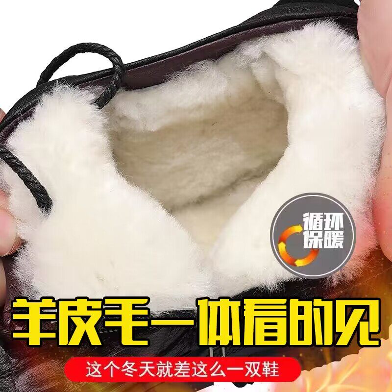 Wood Linson High Helps Cotton Shoes Masculine Gush Thicken Winter Warm Snow Ground Boots Thick Bottom Genuine Leather Wool Northeast Big Cotton Shoes-Taobao