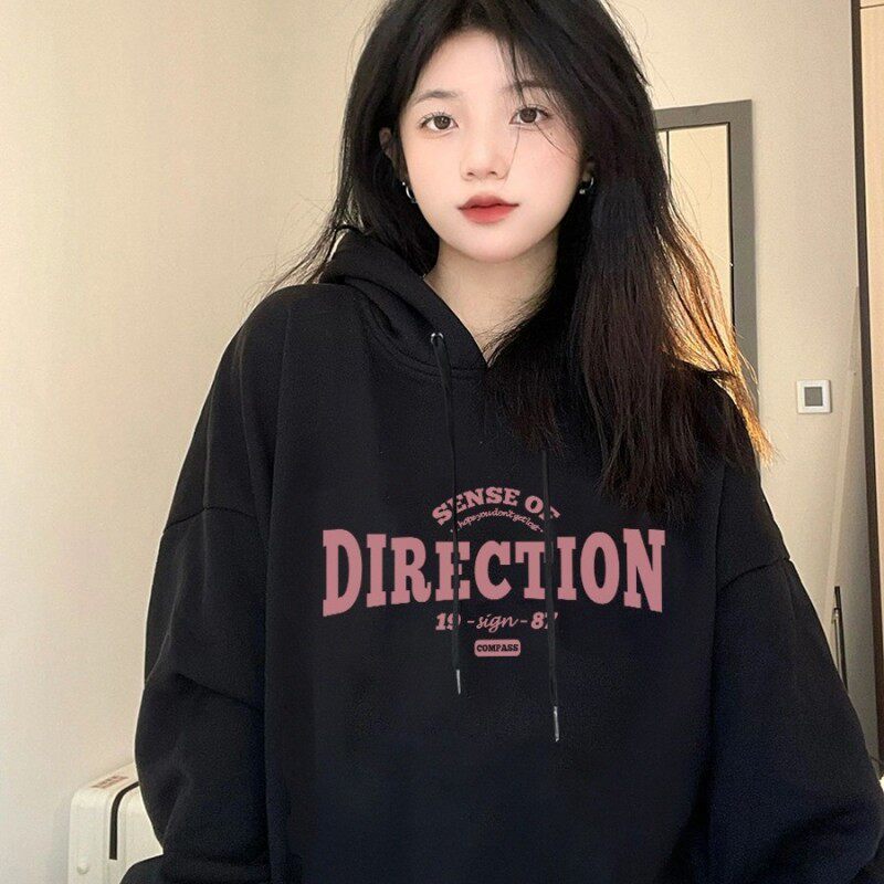 Black weavewear woman 2023 new exploits spring autumn style lady boomer autumn and winter plus suede thickened winter even cap jacket-Taobao