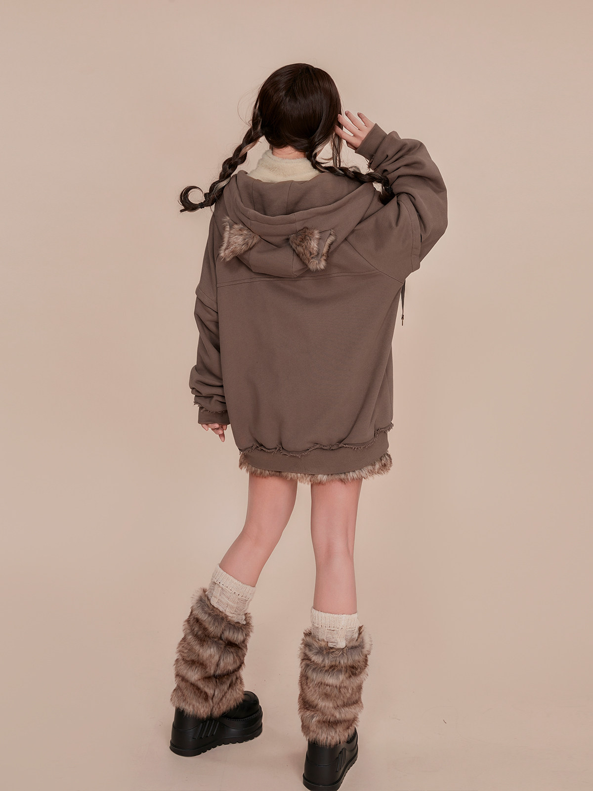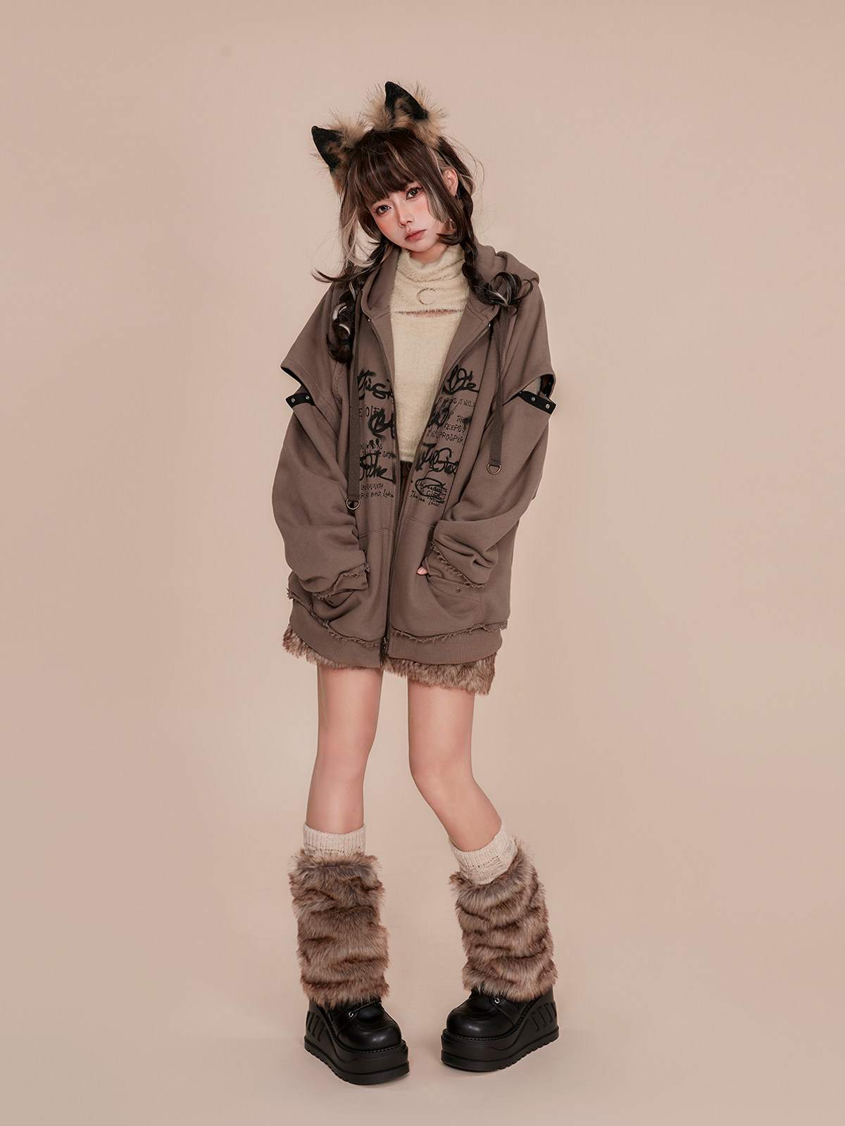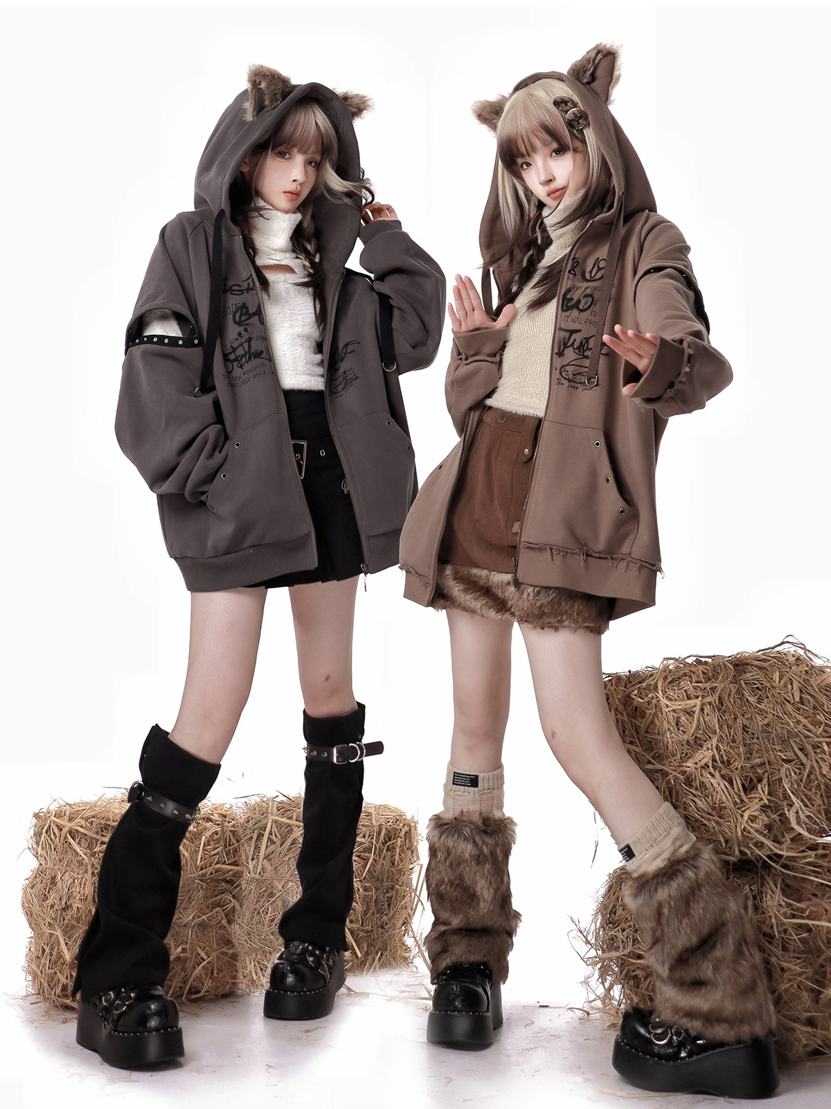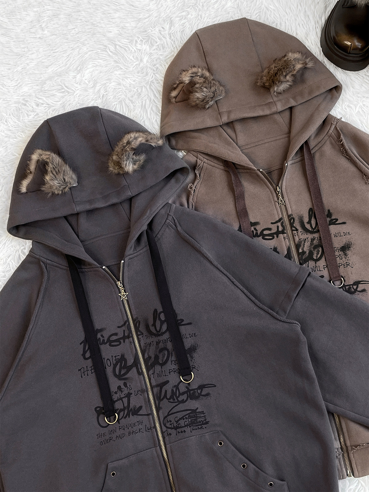 Charcoal Regiment Wolverine Superlassy Plush Wolf ear Graffiti printing loose with cap Thickened Necroe Coat Lovers-Taobao