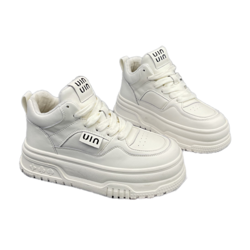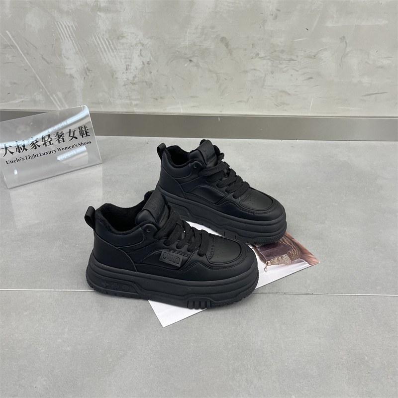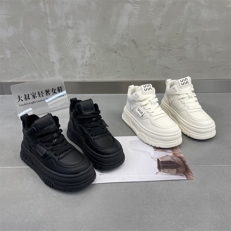 High Bunch Shoes Women Plus Suede Pastry Thick Base Milk Color Small White Shoes 2023 Autumn Winter New Genuine Leather Cotton Shoes Casual Board Shoe Tide-Taobao