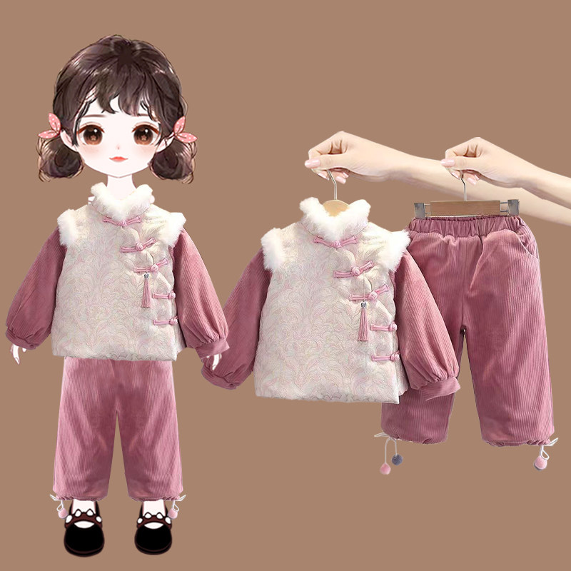 Lashabelle girl cotton suit suit autumn and winter new warm country wind two sets little girl cute foreign air beiyai-Taobao