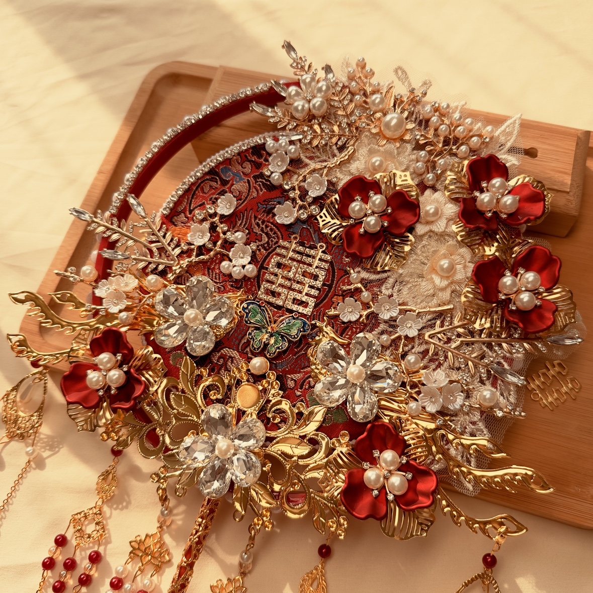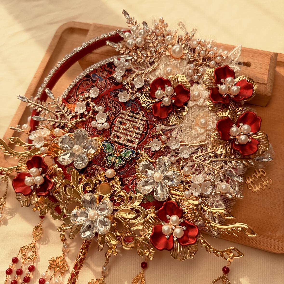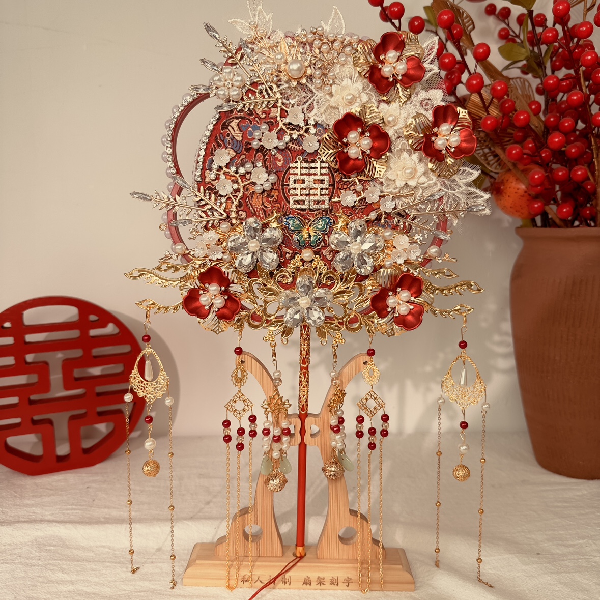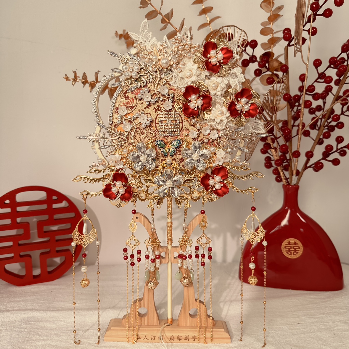 Chinese bridal group fan advanced marriage out of hand, handmade diy material bag bifacial finished product red comedy show and suit-Taobao