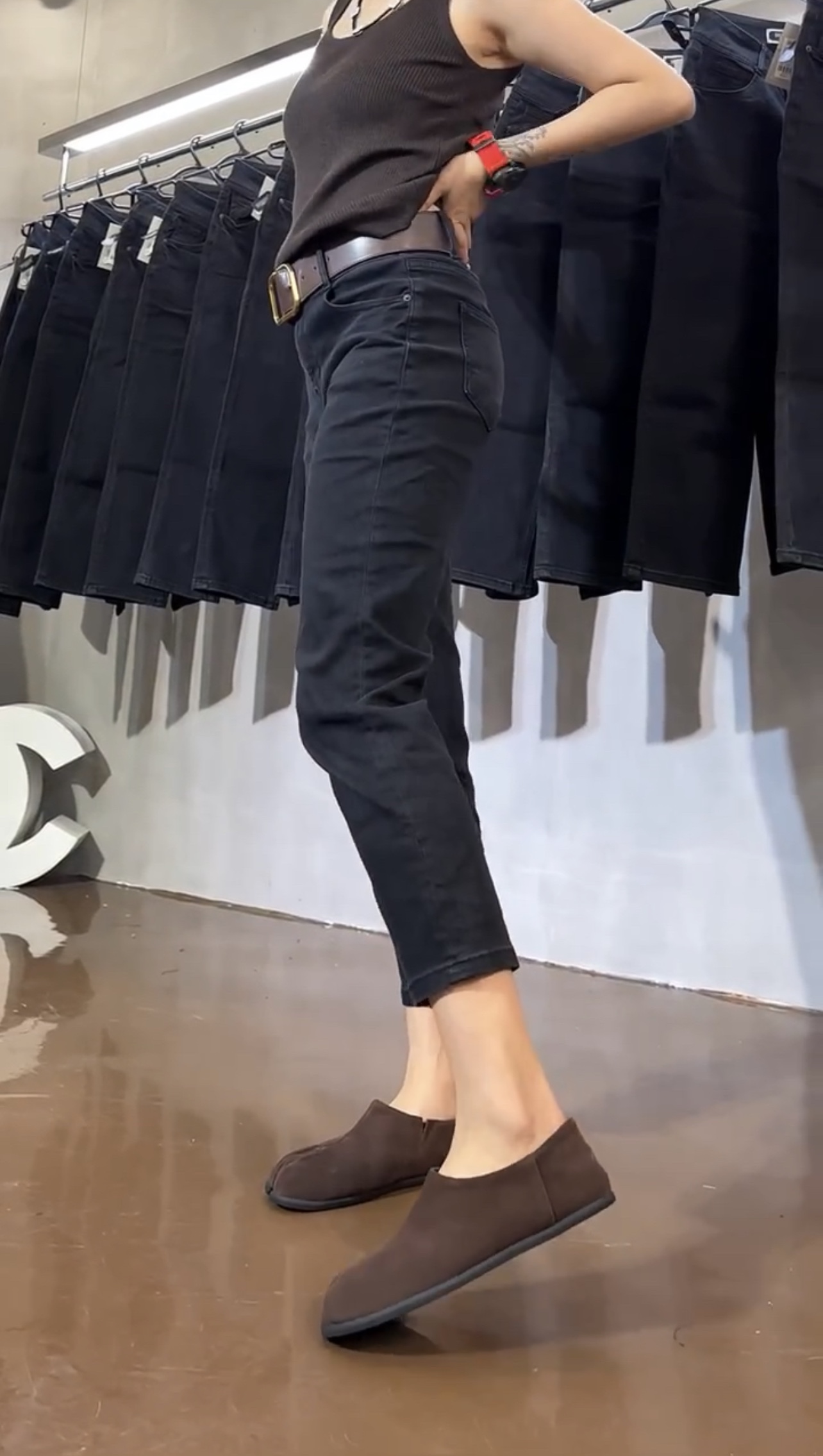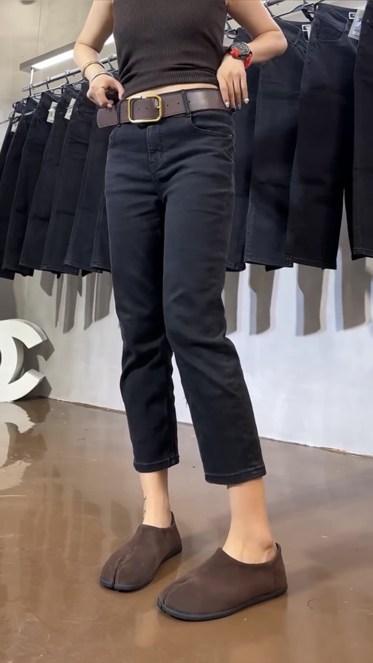 South Korean black elastic straight drum jeans woman 2023 autumn winter new gush thickened display slim 90% smoke pipe pants-Taobao