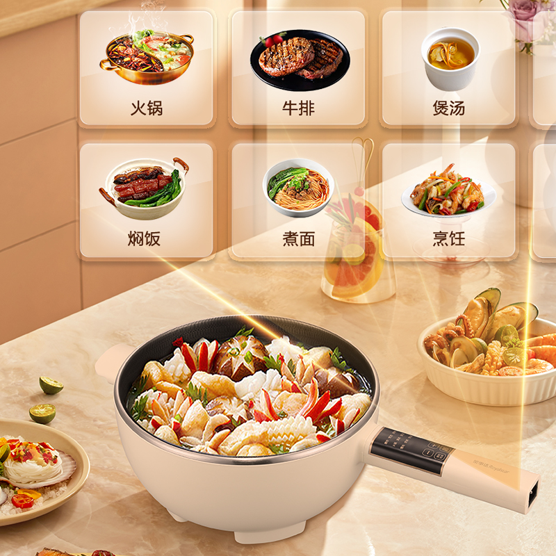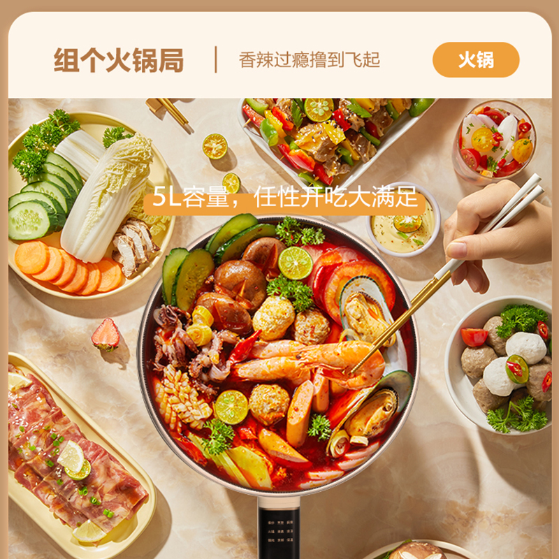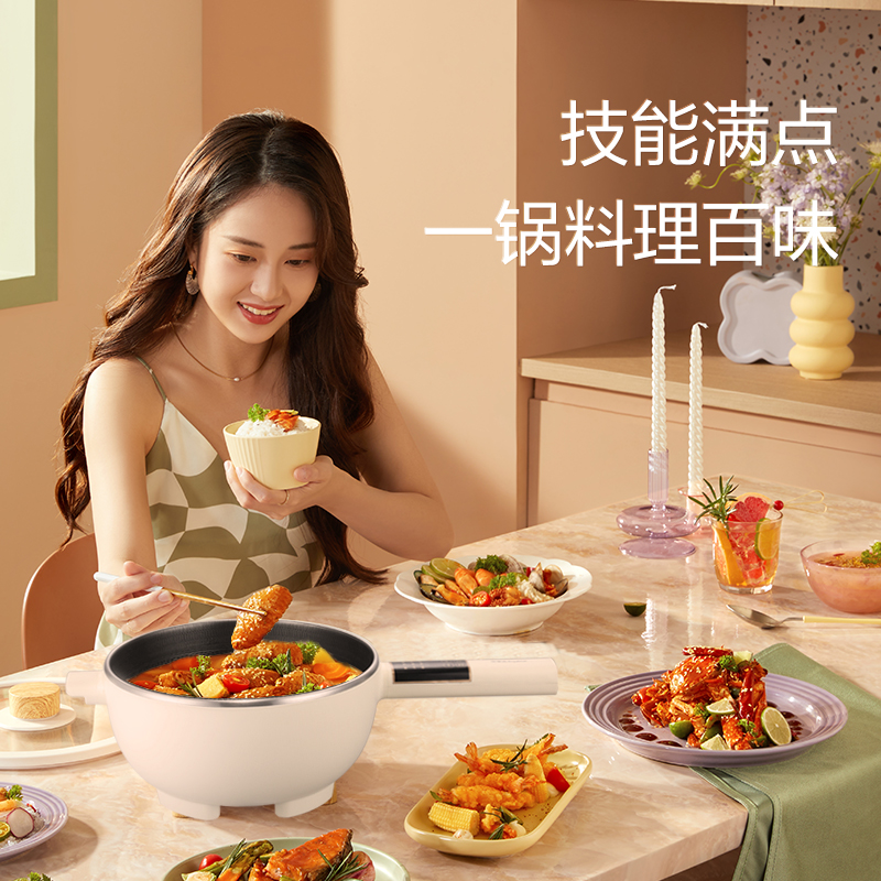 Boom Da electric frying pan Home Multi-functional one-piece electric frying pan electric hot pot cooking and frying integrated pan non-stick pan-Taobao