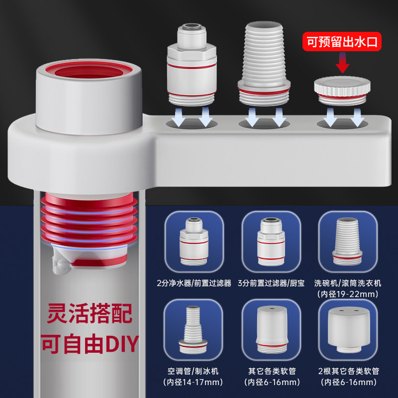 Kitchen sewer pipe three-way connector front filter drain dishwasher sink Water purifier washing machine 3143-Taobao