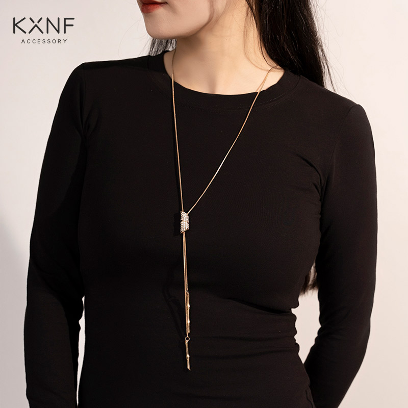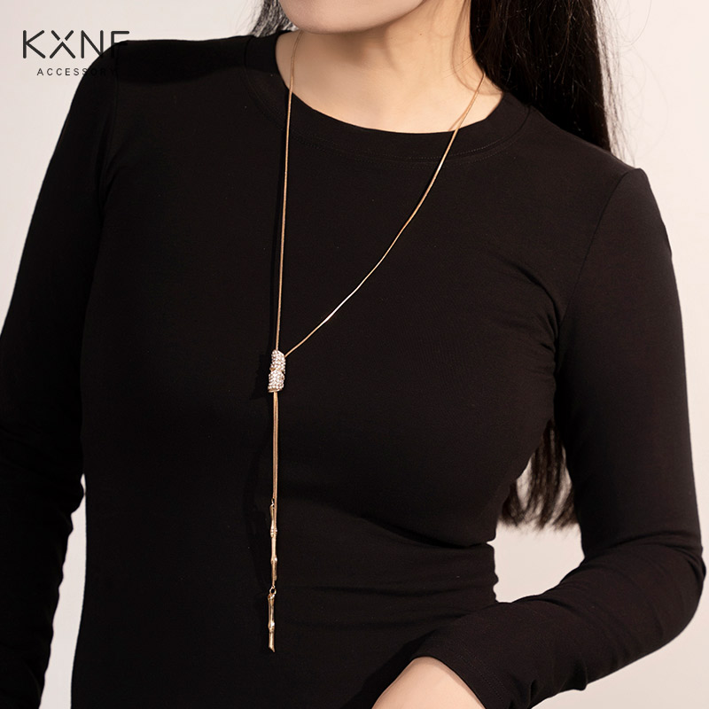 KXNF Long Section Bamboo Festival Sweater Chain Atmosphere Upscale Women Necklace 2023 New Tide 100 Lapped Temperament Chains-Taobao