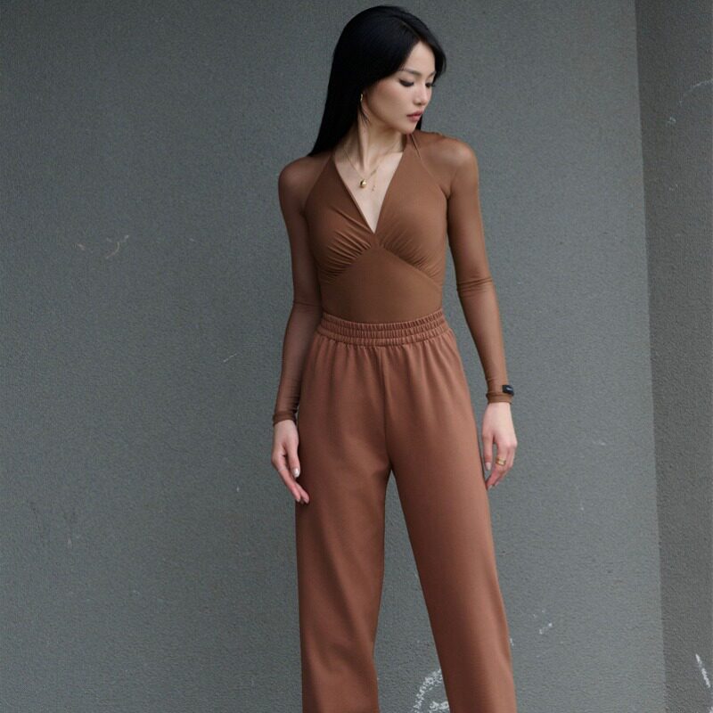 WAVE no afternoon adult female students 2023 new autumn high-end Latin dance uniform with deep V mesh yarn blouses-Taobao