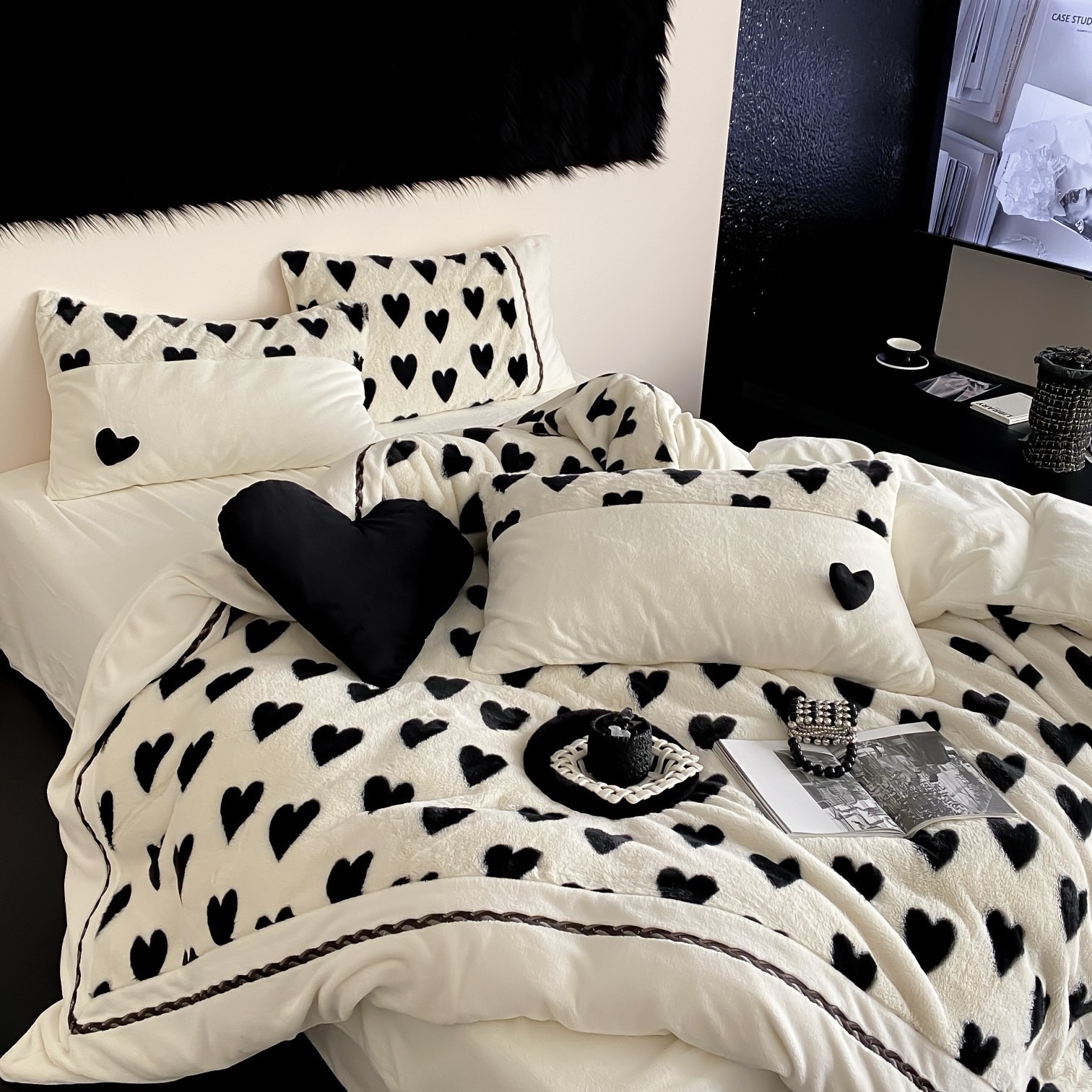 Dreamers) autumn winter AB face high gram heavy rabbit suede milk suede warm storage black and white loving sweet and cool wind four sets-Taobao