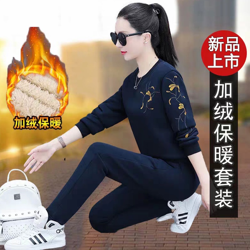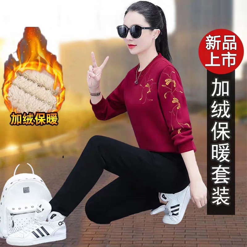 Brand 2023 Spring Autumn Plus Suede Thickened Fashion Casual Trend Sports Suit Middle-aged Mother Foreign Air Two Sets-Taobao