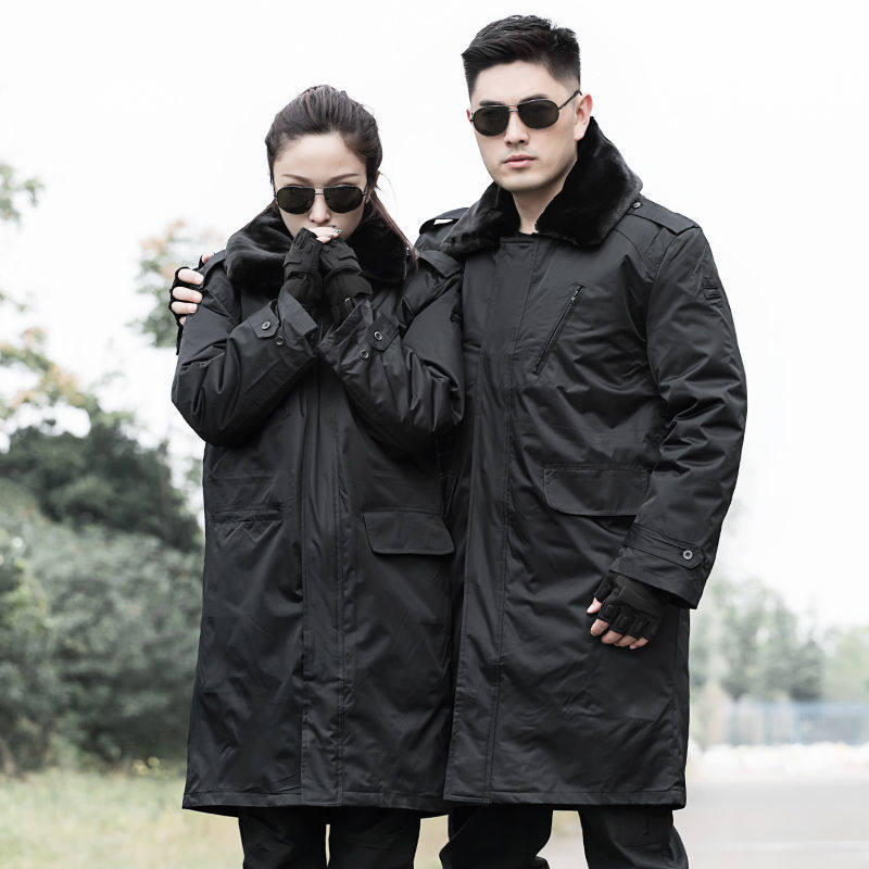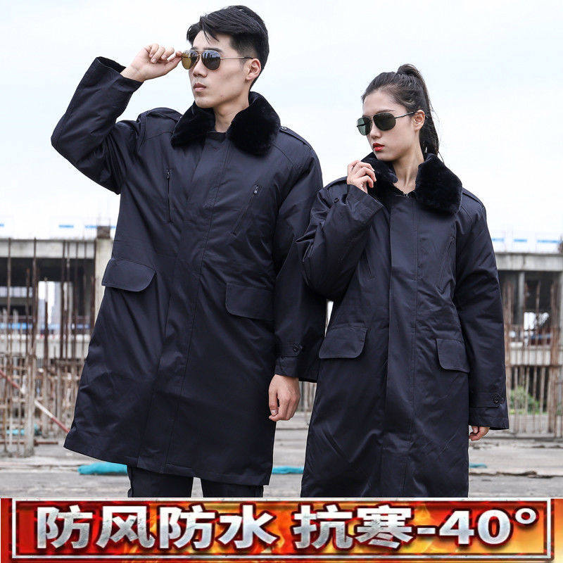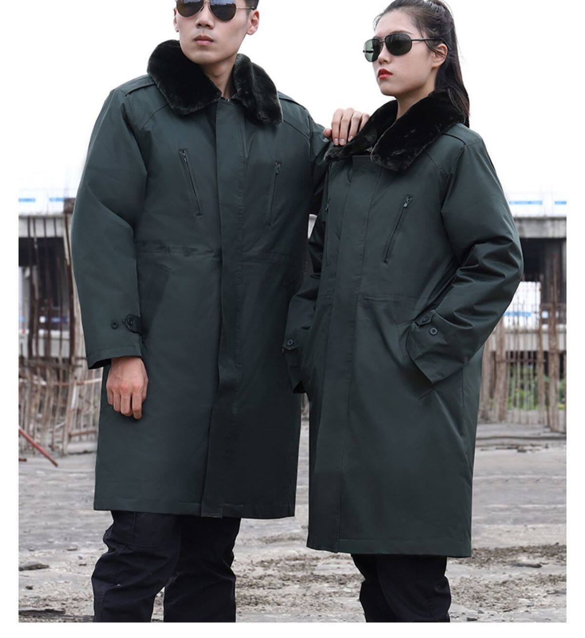 Military coat men's winter thickened lengthened section green cotton coat security cotton clothes woman detachable cold store chill-proof warm-Taobao