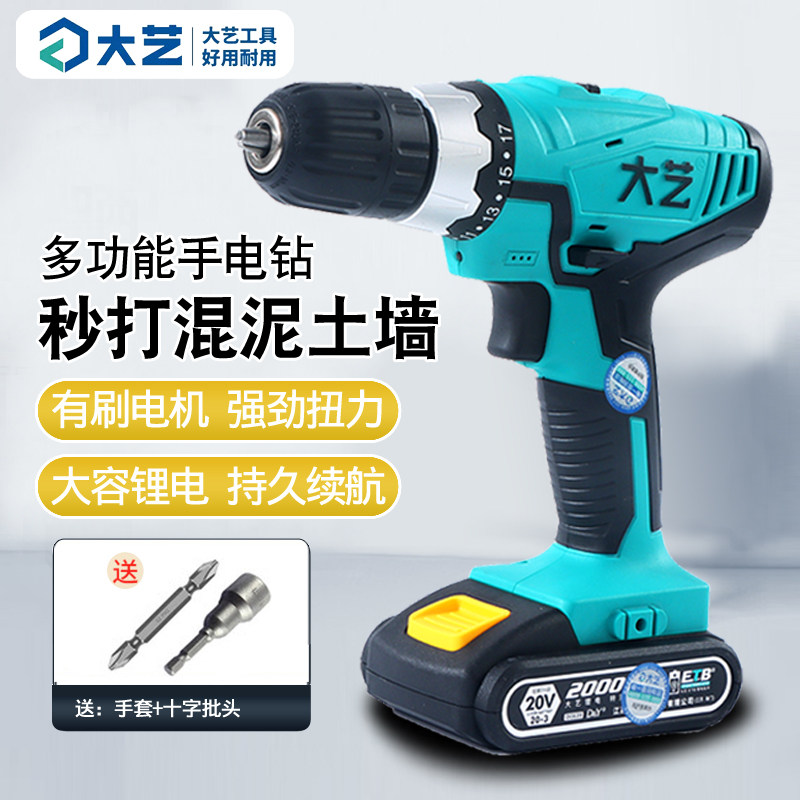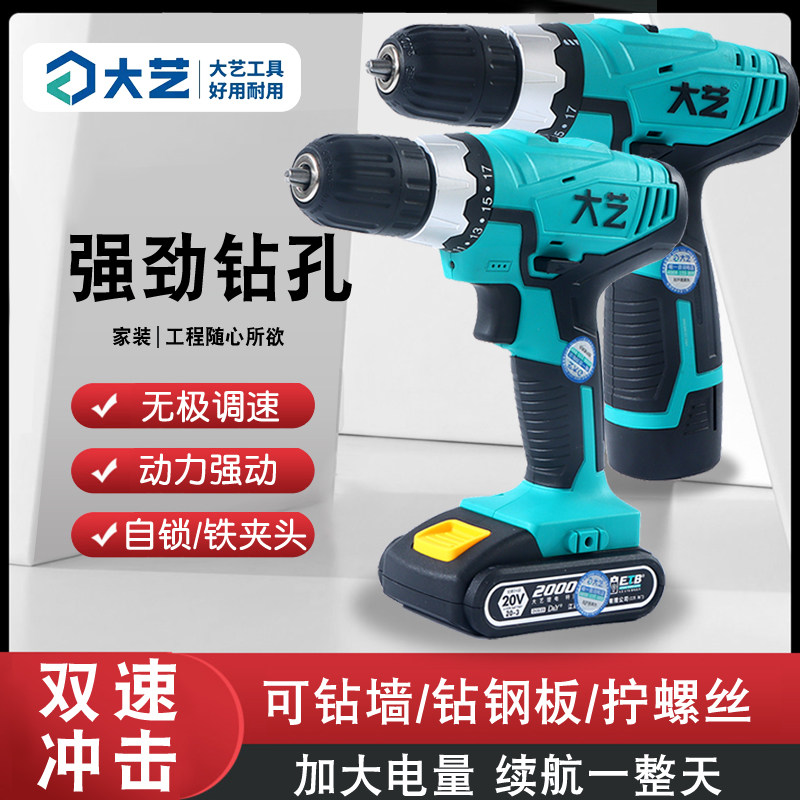 Great Art Charging Hand Electric Drill 20V Double Speed Lithium Electric Industrial Grade Driver Electric Screwdriver Electric Screwdriver Home Pistol Drill-Taobao
