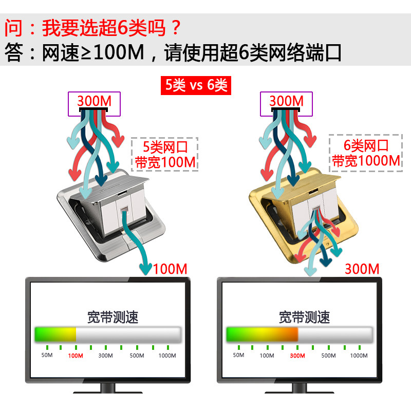 Six types of network ground plug sockets five holes plus network with network wire interface All copper waterproof Category 5 Type 6 Computer ground plug-Taobao