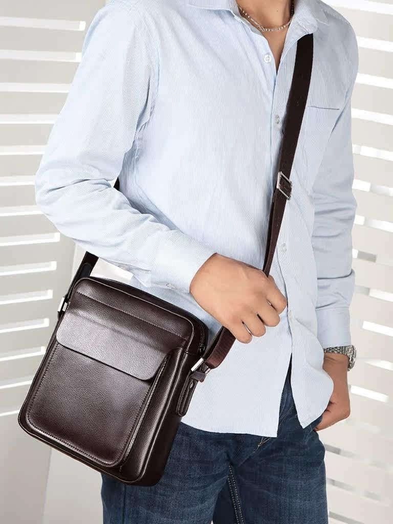 Single shoulder bag Bull Leather Male Bag Slanted Satchel Bag New Business Leather Bag Men's Bag Briefcase Han Edition Casual Little Backpack-Taobao