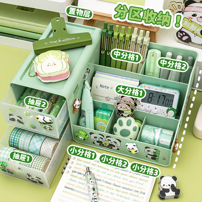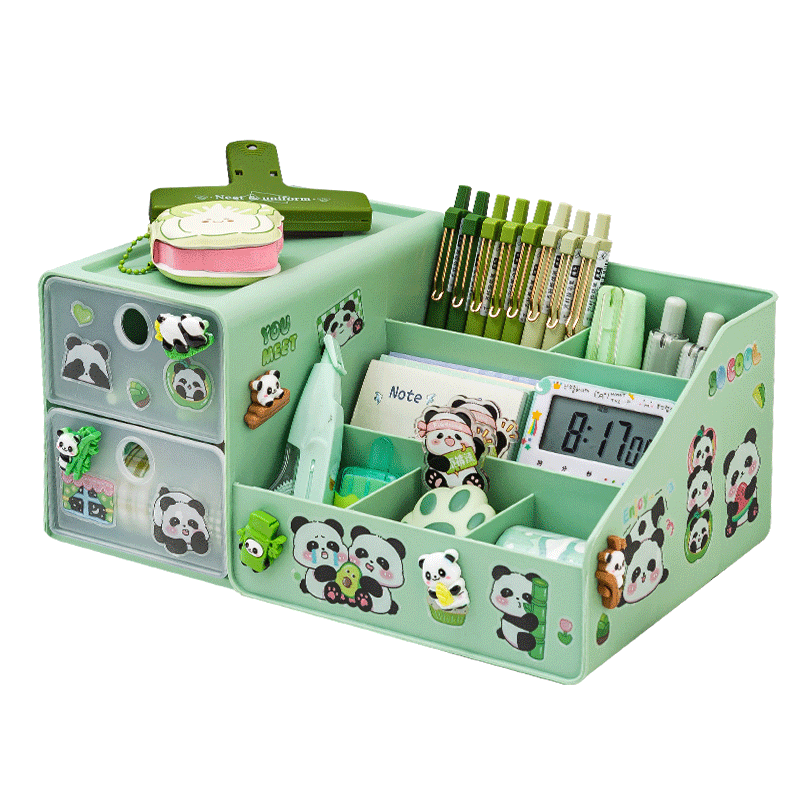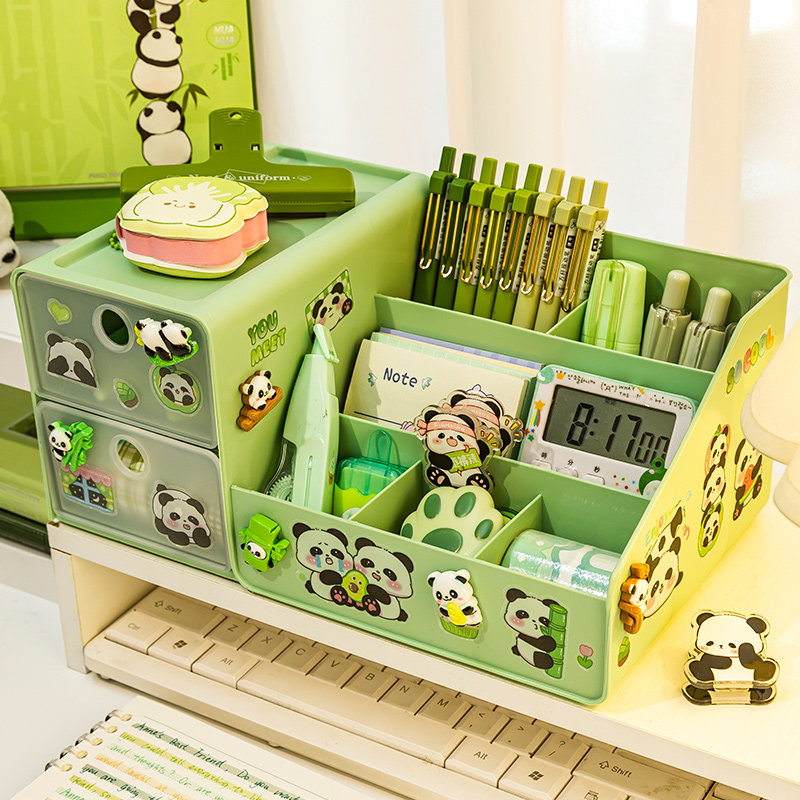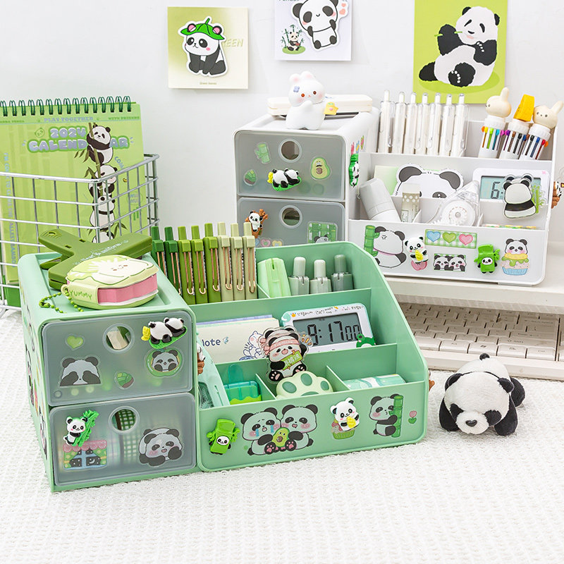 Panda pen holder containing box ~ cute and large capacity student desktop containing box boy girl with pen holder with drawer high face value pen barrel multifunction children's desk containing shelf pen holder-Taobao
