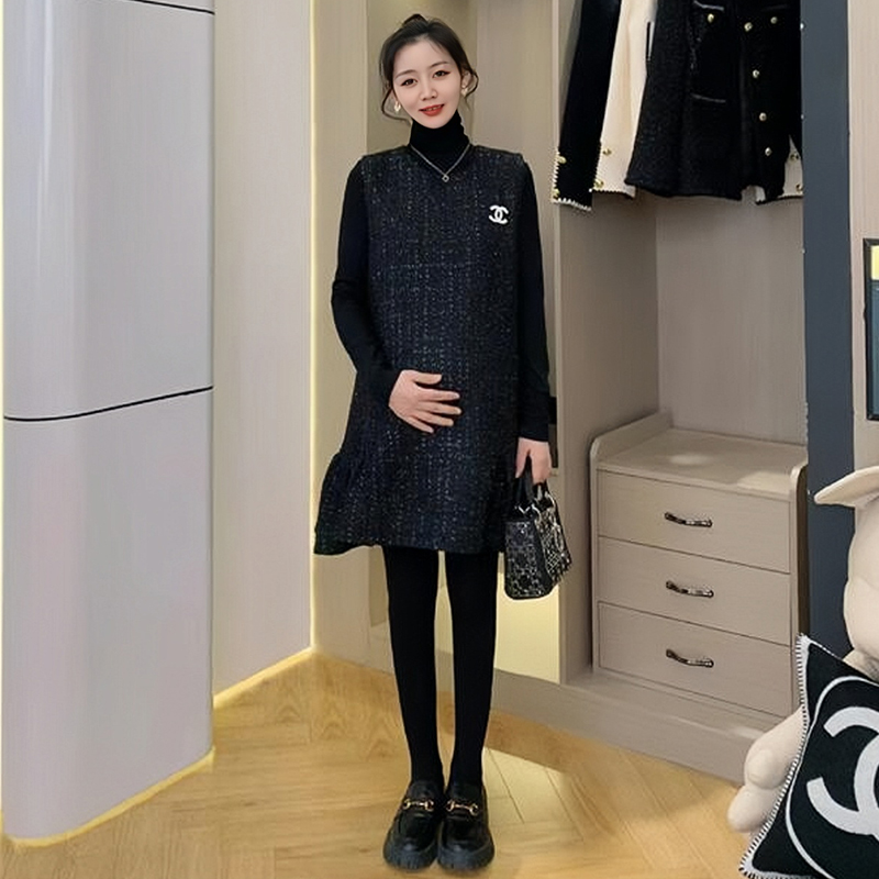 Pregnant woman Advanced sense Two sets of autumn and winter outwear fashion small balsamic sweaty vest with clothing and skirt suit loose and thin-Taobao