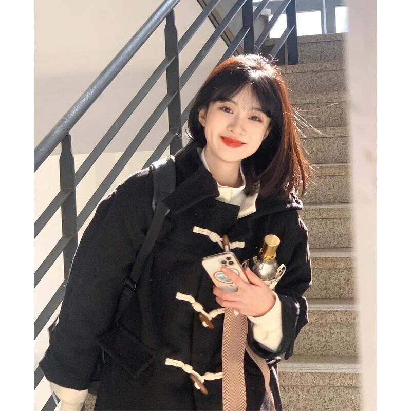 Even hat-horn button fleece? 2023 Winter new Academy Airy Coats Little Sub Thickened-Taobao