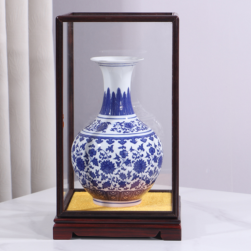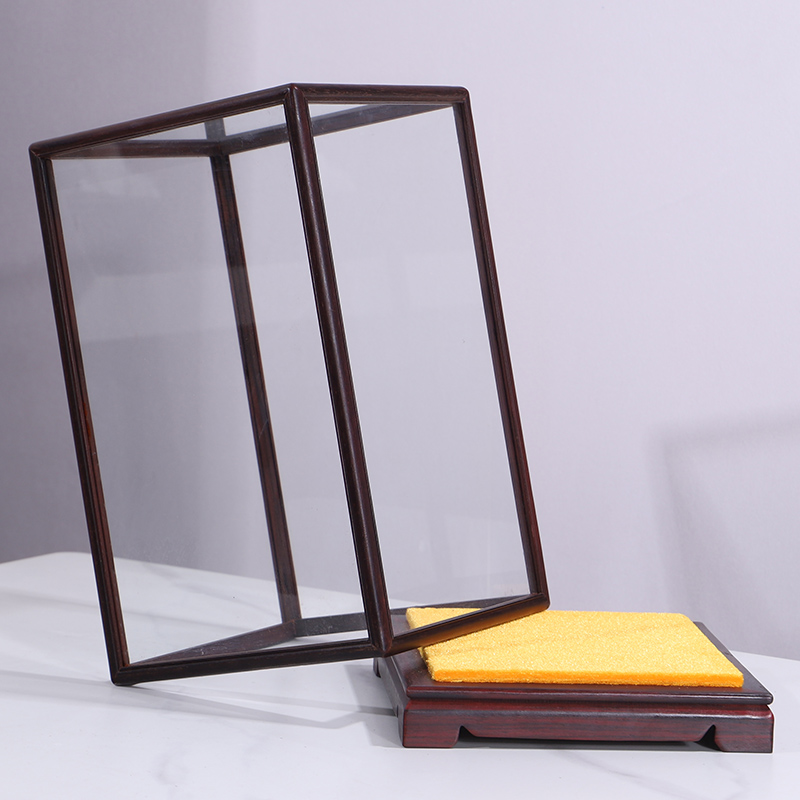 Red Wood Glass Hood Purple Sandalwood Vase Antique art Handicraft Swing Pieces Display Case Dust Cover Subcustom-Taobao