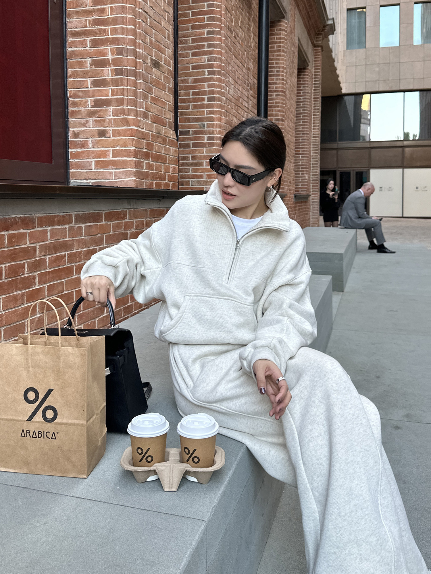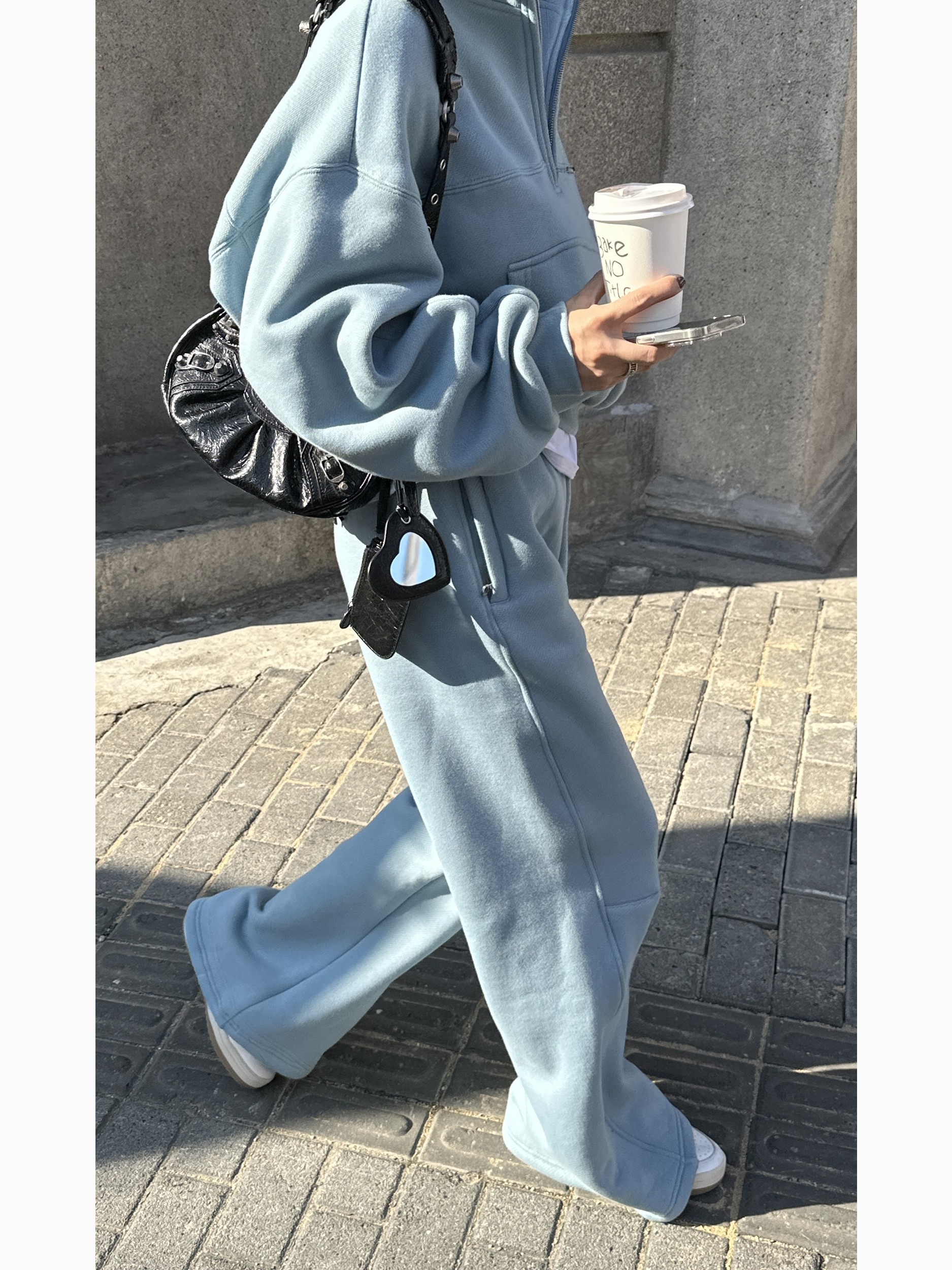Casual Sweatshirt Woman Thickening Suit 2023 Winter New Loose Broadlegged Pants Straight Barrel Drag Underpants Plus Suede Short jacket-Taobao