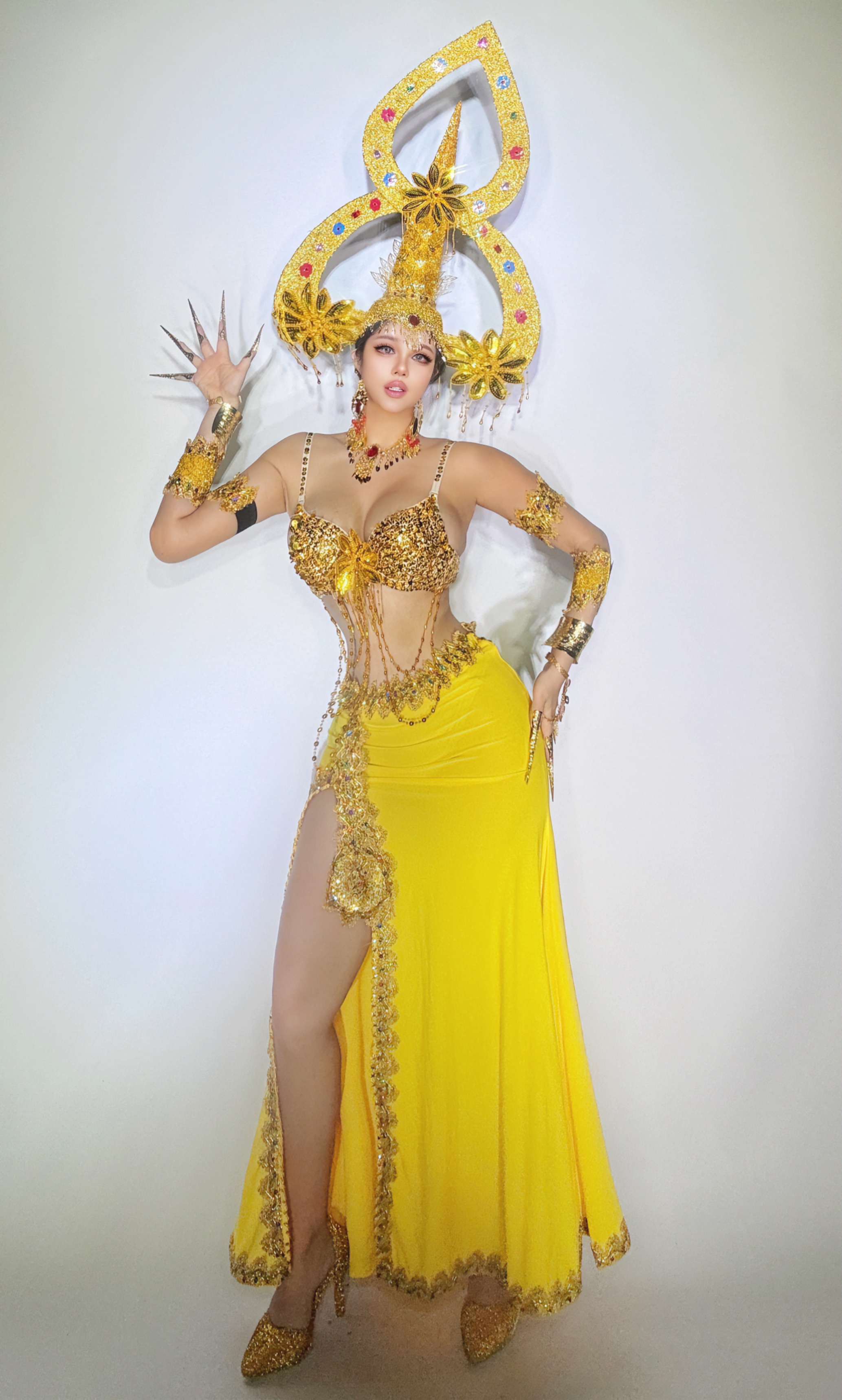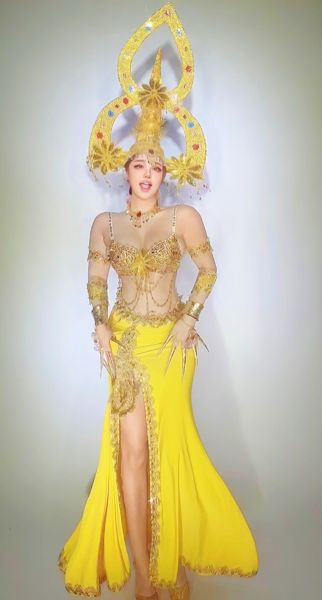 Golden Dai ethnic group Wind performance out of Thailand Exotic Theme Show Nightclub Party Gogo Atmosphere Leading Dance Dress-Taobao