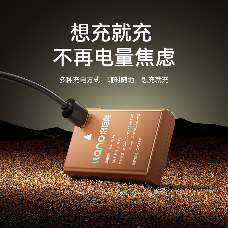 Green giant energy Type-C straight charge camera battery EN-EL14 Applicable Nikon D3300 D3400 D3400 D3100 D5300 D560 D560