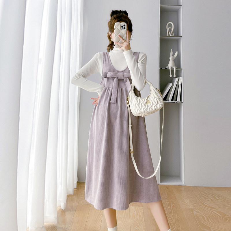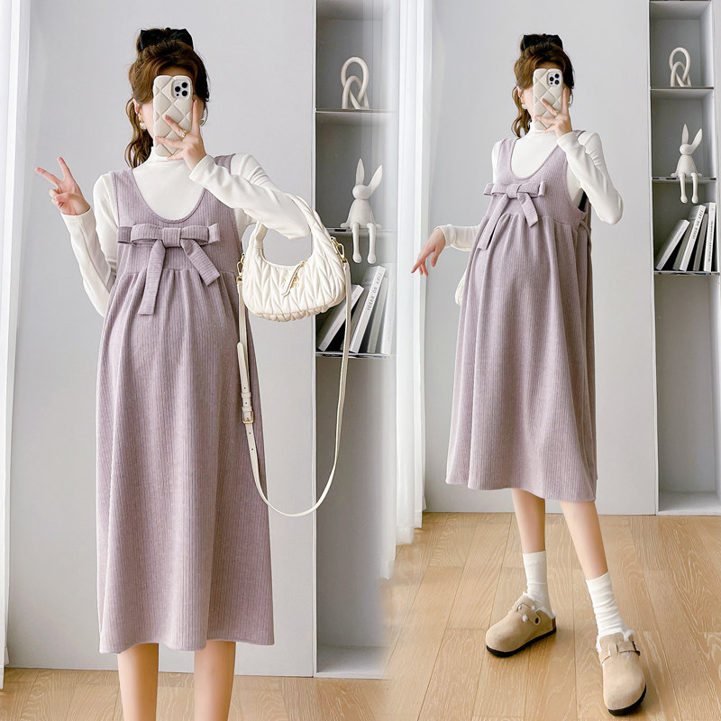 Pregnancy Woman Dress Autumn Winter Style 2023 New Fashion Suit Light Core Suede With Suede Dress Two Winter Skirts-Taobao