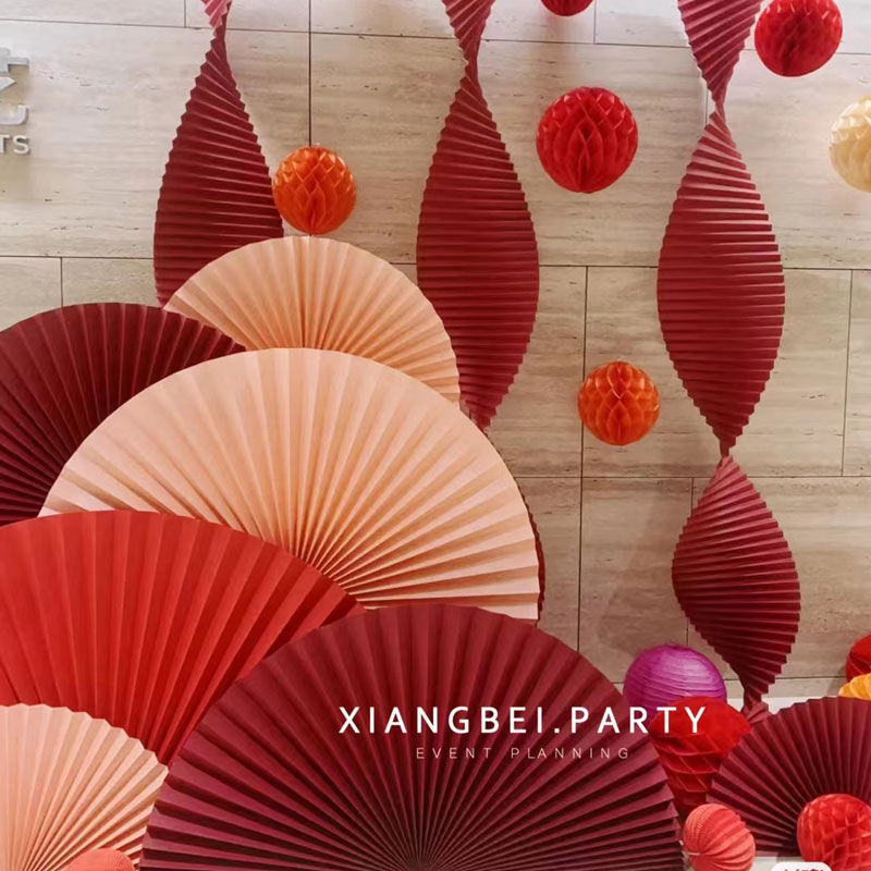 Red wedding celebration long corrugated paper wedding on-site background decoration Spring Festival Festive Windows Wave Origami-Origami Props Arrangement-Taobao