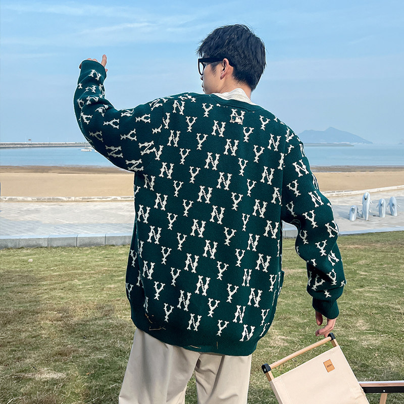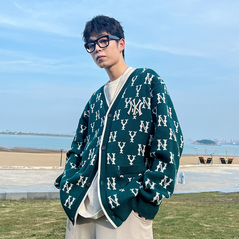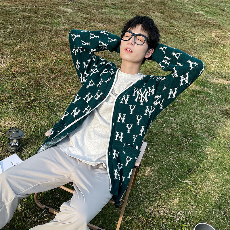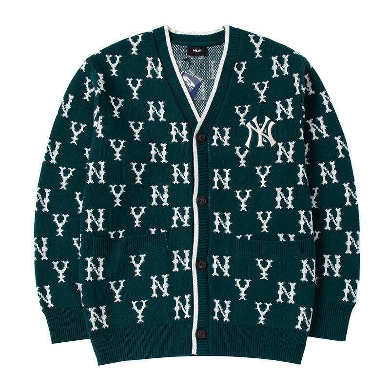 MLB Official Retro Old Flower Knit Cardiovert Jacket Man Fall New Sportswear Green Casual Loose Jacket-Taobao