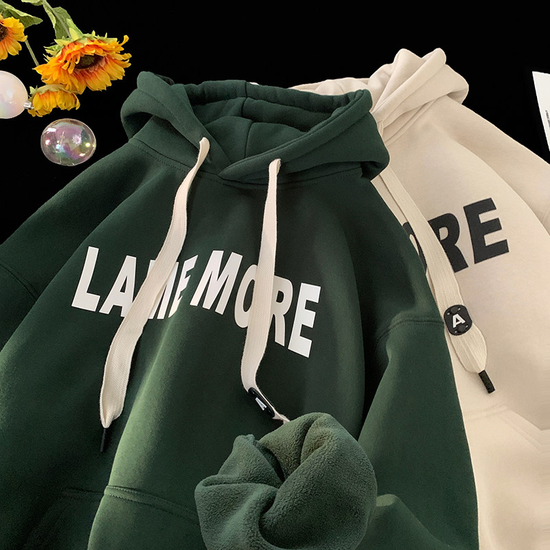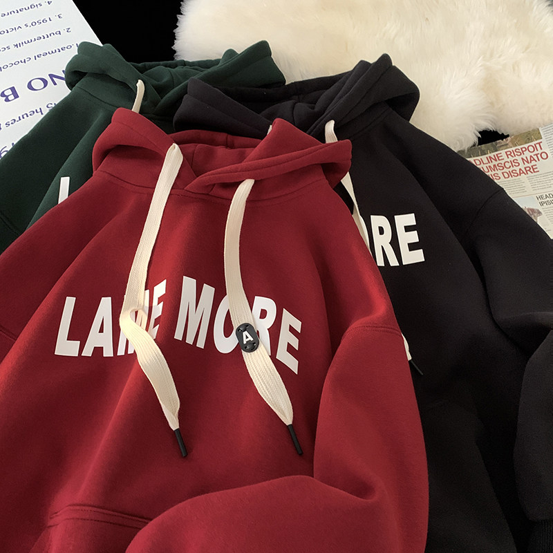 Senma's minette plus suede thickened sweatshirt women's autumn winter loose casual hit undershirt with cap and coat wave-Taobao