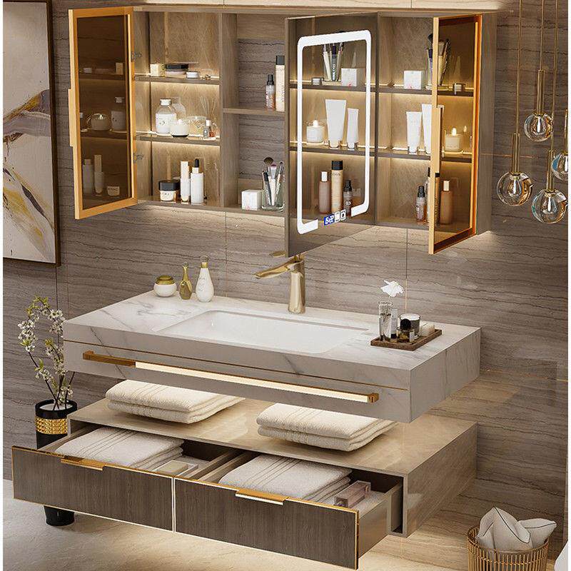 New 2023 Light Lavish Rockboard Integrated Bath Cabinet Combined Toilet Modern Wash Terrace Washstand Smart Wash-up Pool-Taobao