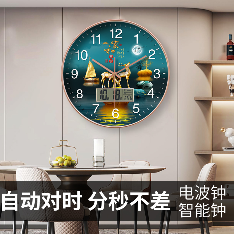 High home silent clock hanging clock Living room Home 2024 New automatic pair of time airwaves clock minimalist light extravagant decoration clocks-Taobao