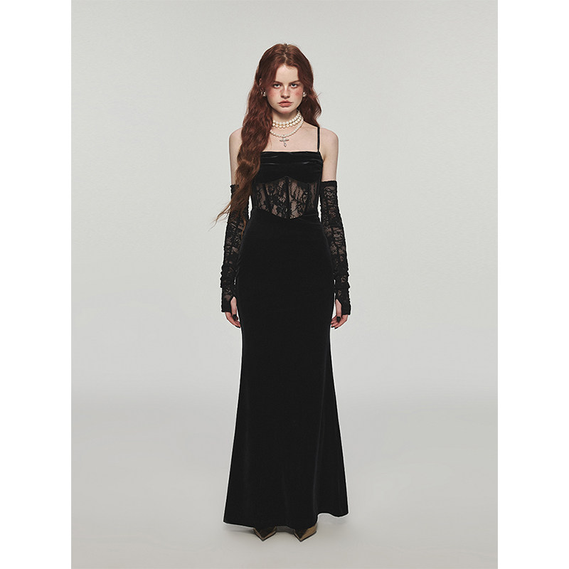 1JINN STUDIO Christmas atmosphere wardrobes sexy fishbone harness long wire velvety body wrap hip dress-Taobao